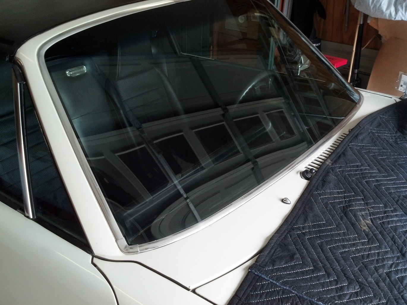 I had to call several local Windshield shops before I could find someone to take the job, but these guys came thru at a reasonable price. The guy did a great job getting the old windshield out, without any damage to the interior. The Windshield has a tinted stripe on the top, which is not original. |