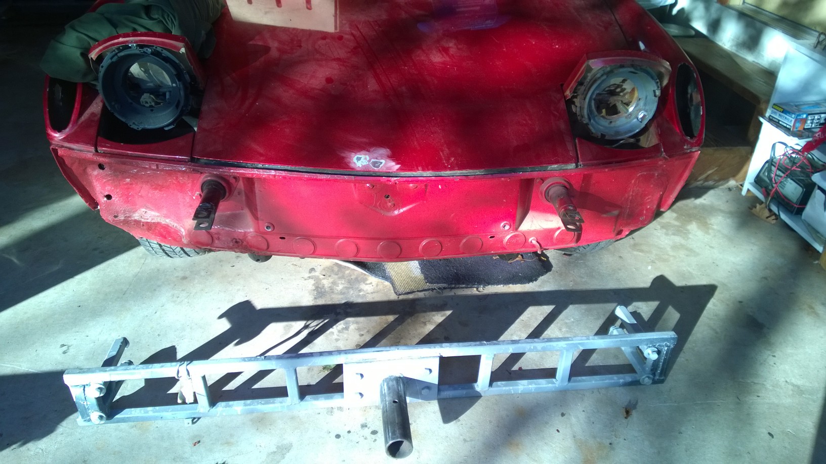Happy New Year everyone. It’s been a while since I started this. This project started off like a herd of turtles. Life got in the way (preparing for the holidays, trips out of town, etc.). I also struggled for a while to figure out how to adapt the rotisserie for the ’75 bumper setup, but I managed to weld a bracket on that fits to the bumper shocks just before Christmas. Now I can REALLY get myself in trouble. BTW, even without need to flip the car just yet that rotisserie rocks as I’m able to move the car around the tub. Now that the holidays are actually here and gone I have chunks of time on the weekend to work on the car (in between son’s wrestling tournaments).
