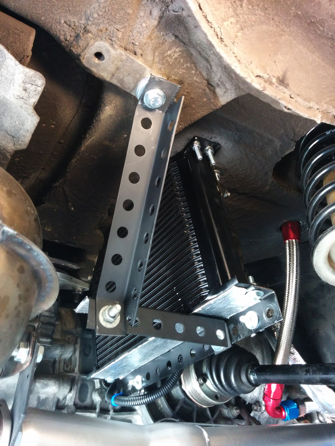 I am curious though if anybody else has an opinion about the cooler being braced against the muffler bracket. Keeping in mind transmission and engine are on solid mounts. |