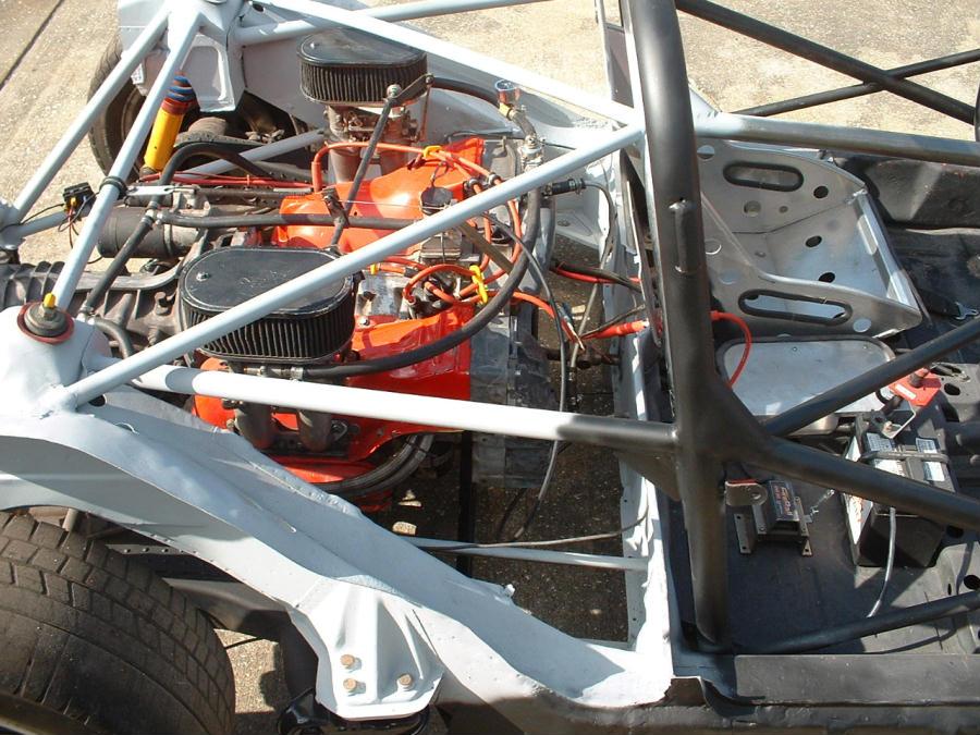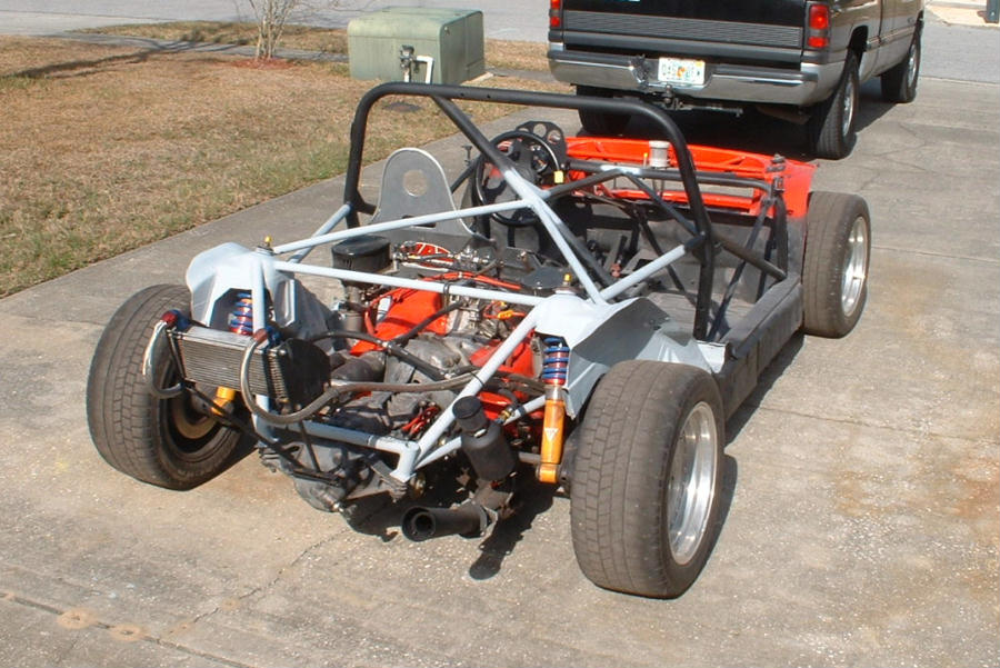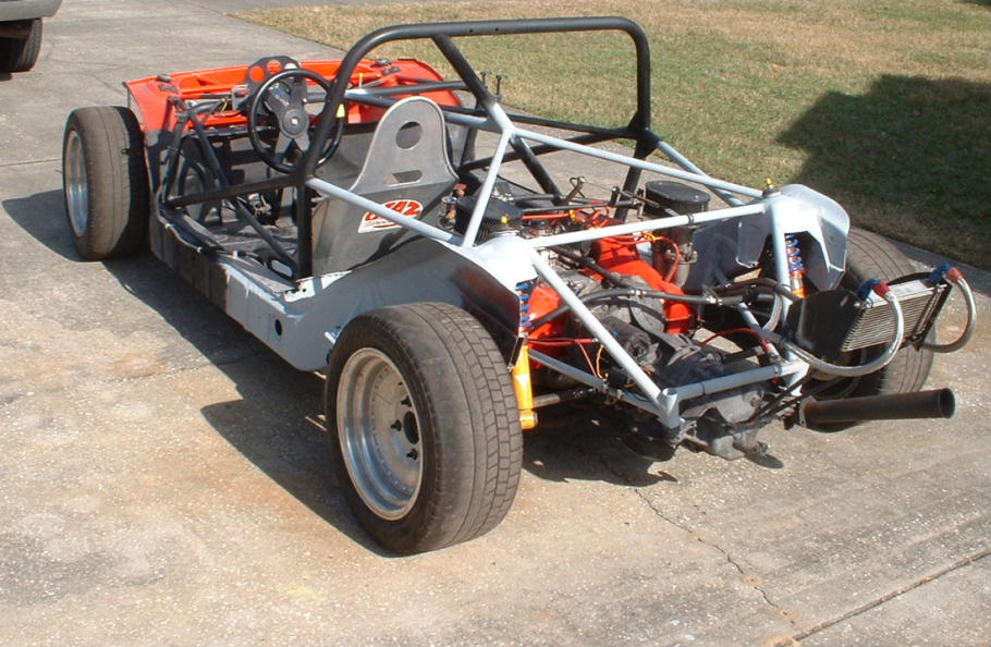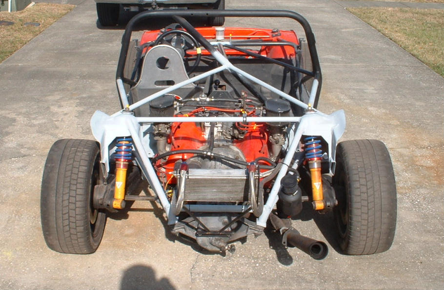 Yikes!!! I'd probably add a x-brace or two, very small dia cro-mo tubing at the trans mount points. I remember the old Wayne Baker car (#22) had to have some extra braces and a few gusets too at the back end mainly due to the wipping effect of the engine-tranny combo as that is a huge pendelum in the middle of the car!!