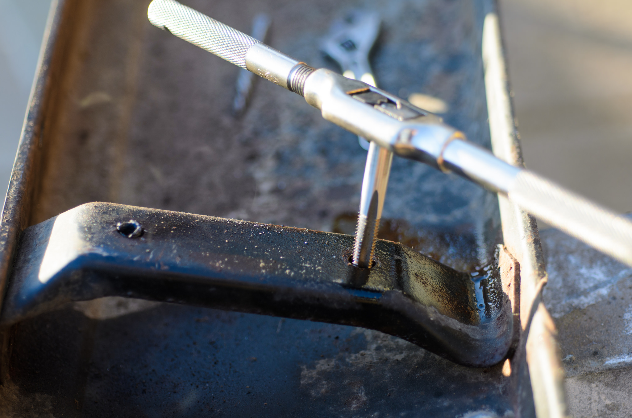 Rear bumper sourced from IL and it must have come from a rust bucket as two of the rear bolts were snapped in place and poorly drilled out. Thankfully they coaxed out and tapping proved to do the trick.
