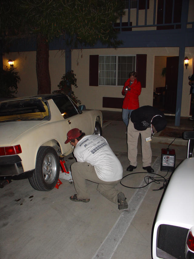 This is the story of a guy who wanted a 914 for the track day so bad that he BOUGHT one the night before, found a serious problem requiring WELDING before the car could be safely tracked, and proceeded to FIX IT IN THE PARKING LOT OF THE HOTEL like it was no big deal. First let me introduce the Adobe Car, a 73 1.7 being sold by a club member suspiciously named 'bondo'. Attached image(s)