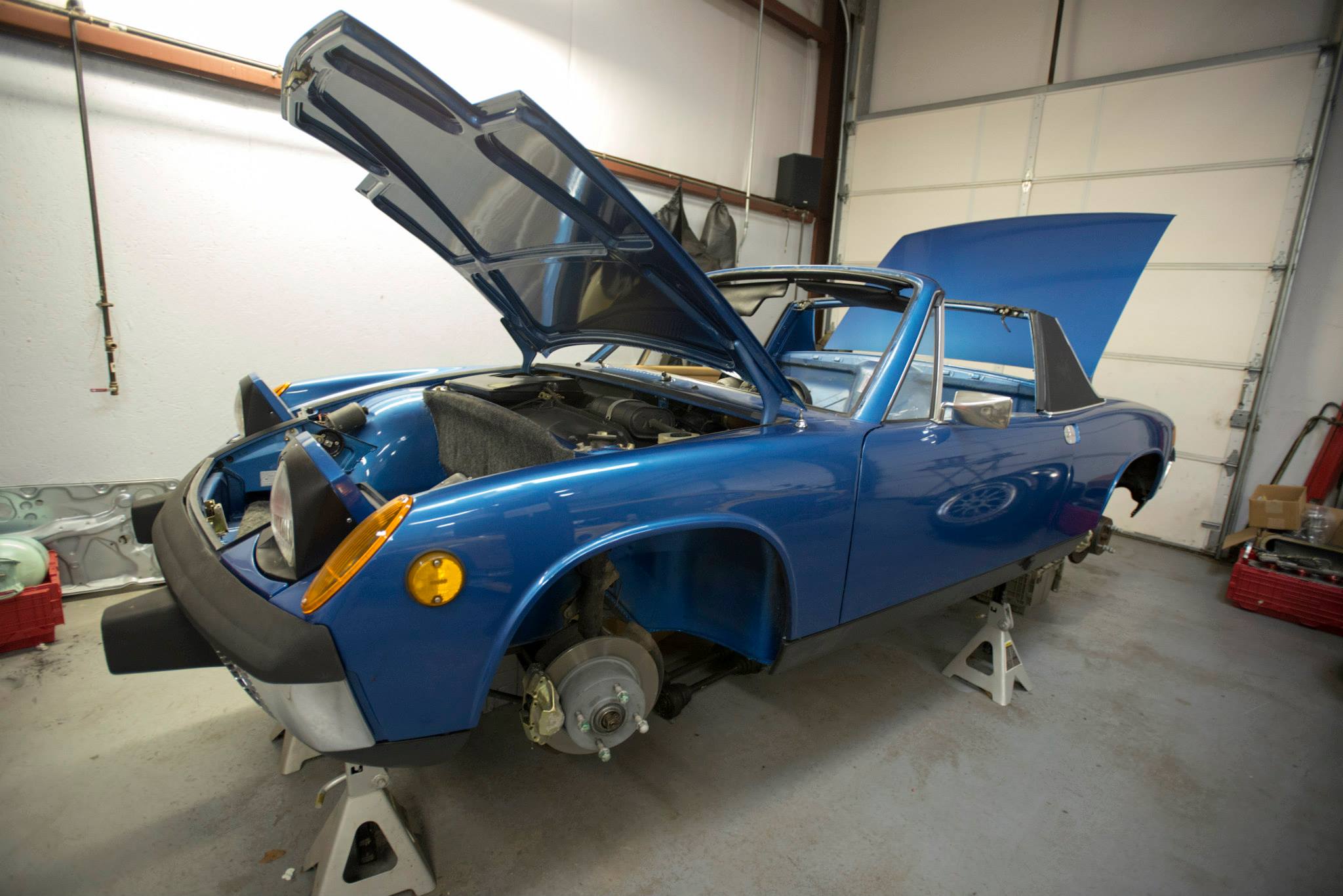 May 1973, my wife Minerva purchased her first new car. She chose this 1973 Alaska Blue / Tan interior 914 2.0 with Appearance Group. Between 1973 and 1992 she and I drove it just over 81,000 miles before pulling it in the garage and lifted it up on jack stands. In 2010 I decided to begin the restoration to return her car to her. A complete disassemble and paint by Dee Lashley started the process. I then reassembled it only to discover the engine was locked up due to water getting into the cylinders while out of the car. I shipped the short block off to Fat Performance in CA for a line bore check (it was fine) and new jugs, etc.. Upon return in 2011, the car sat for over two years waiting for the local "In By Noon, Out By June" shop to setup the fuel injection with the idea to give it back to Minerva May 2013, the car's 40th birthday. When that deadline past without success, my next idea was to give it to her on her 16th birthday. LOL, okay I'll explain. Minerva is a leap year baby, meaning she only has a REAL birthday every 4 years and Feb 29, 2016 was to be her 16th real birthday. How cool is that? Well, even thought the shop owner apologized for missing the car's birthday he assured me he would finish it by 2016. A full 3 years to get it done. When he missed that date as well, I was furious and arranged to move it to Black Forest Racing in Denver NC and put it the capable hands of John Forbes and his wonderful staff. That happened in June of 2016. John said he had 2 projects in front of me but he liked my story and said he would do everything in his power to finish the 914 by Minerva's birthday this year. Feb 26, 2017, I picked up Minerva's car and gave it to her for her 16.25 birthday. Thank you SOooo much John Forbes for working so hard to make this happen!!!
