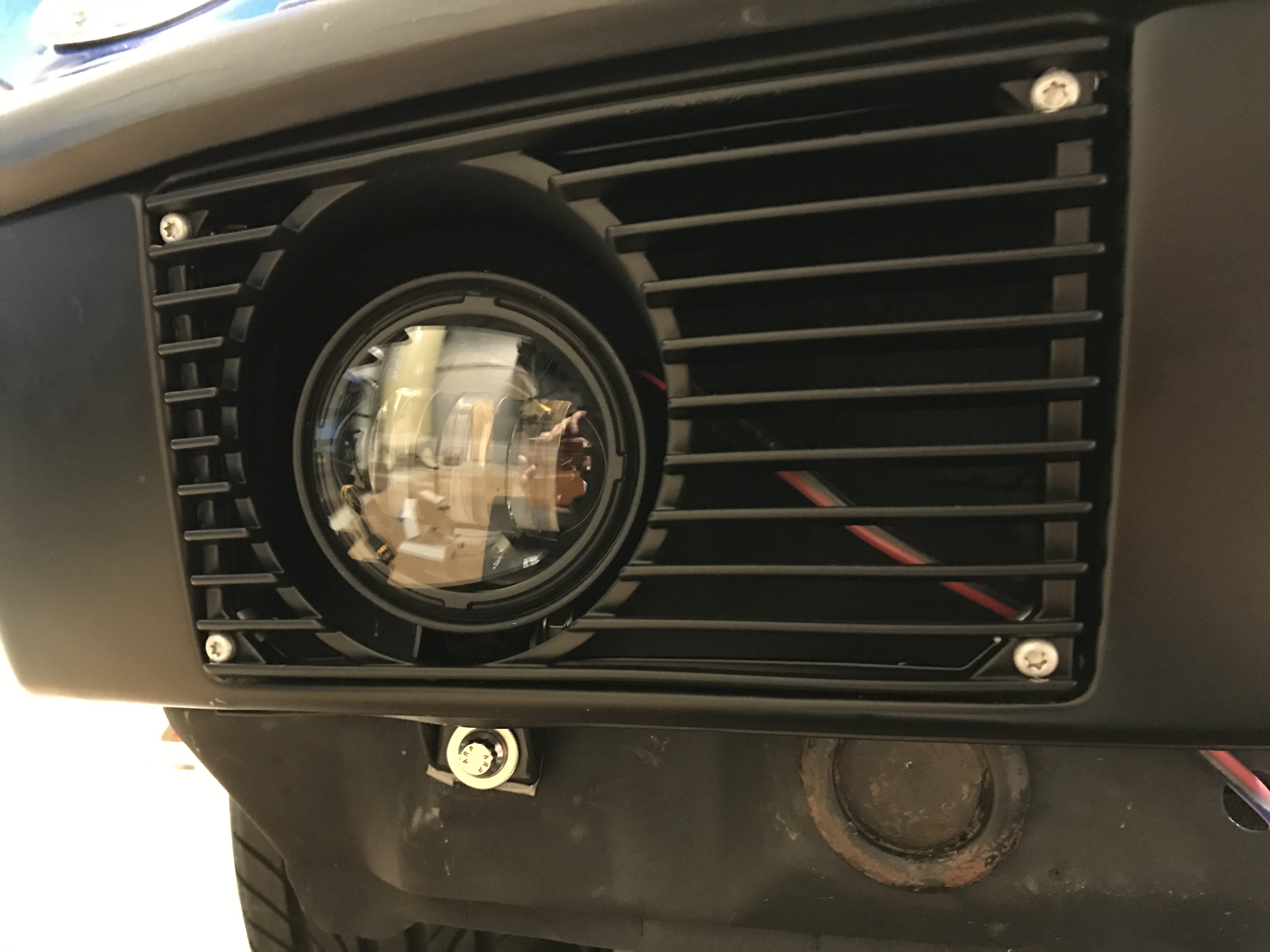 For what seems like forever I have been searching and posting for fog light grill nuts. Several members have been gracious enough to send me some. Some of those worked better that others. I gave up and decided to improvise. Instead of the #8 screw I'm using a M5 "J" nut with an M8 pan head screw with an internal torx drive. I agree that it is overkill but what the hell I'm finally done with my fog light grill install.