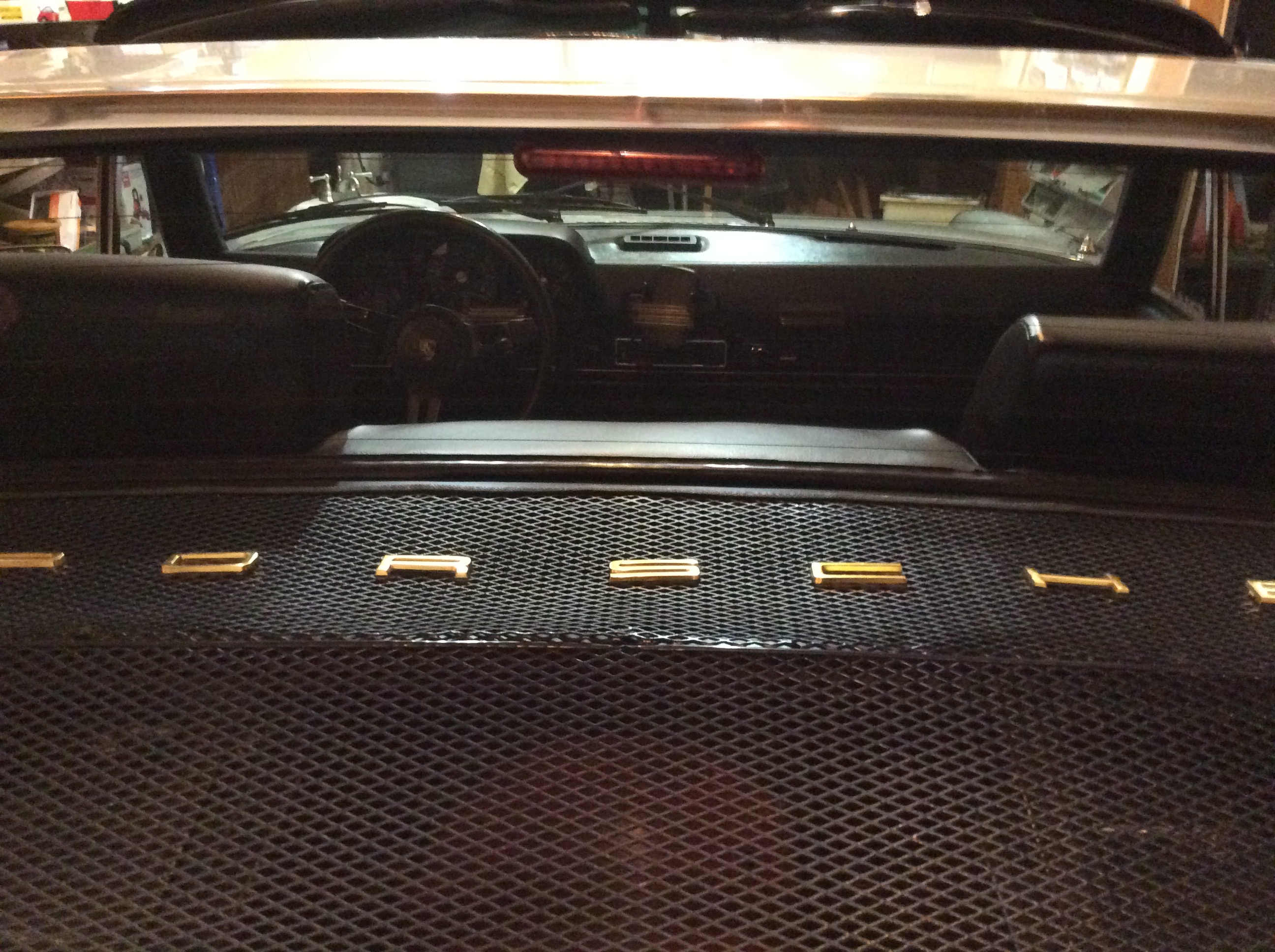 What about flipping it over and mounting it to the grille on the engine lid cover? Putting it there would require no drilling, and should still be pretty visible to large vehicles behind the car. Thought about grill placement. It just looked more appropriate to my eye under the targa bar, and I also figuered the higher up the better for visibility. Jmo. |