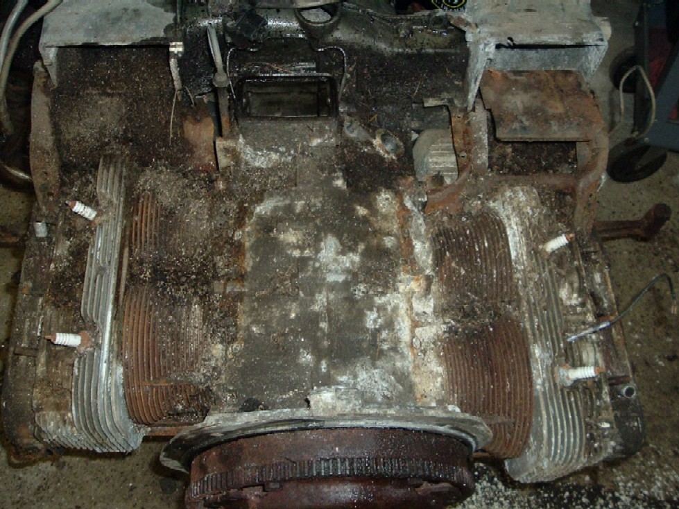 I used to like rodents. Mice and squirrels are cute, right? NOT when several generations of the little bastards take up residence in your cooling system. I started tearing the '73 motor down and found tons of nesting material packed into the cooling tins. That wasn't so bad until I removed it all (the light fluffy stuff) and found the gooey layer of urine/feces/etc. packed in between the fins on the jugs and heads. YUMMMY........... This motor was in a junkyard car to begin with (for who knows how long) and then sat on a pallet in the PO's yard for a number of years. Funny thing is, this one actually turns over. I never would have guessed that, seeing as it looks like it has spent the last ten years buried underground. I'll get it up on the engine stand today and crack it open. I'll keep you chaps informed of the progress. Thanks for the help. Attached thumbnail(s)