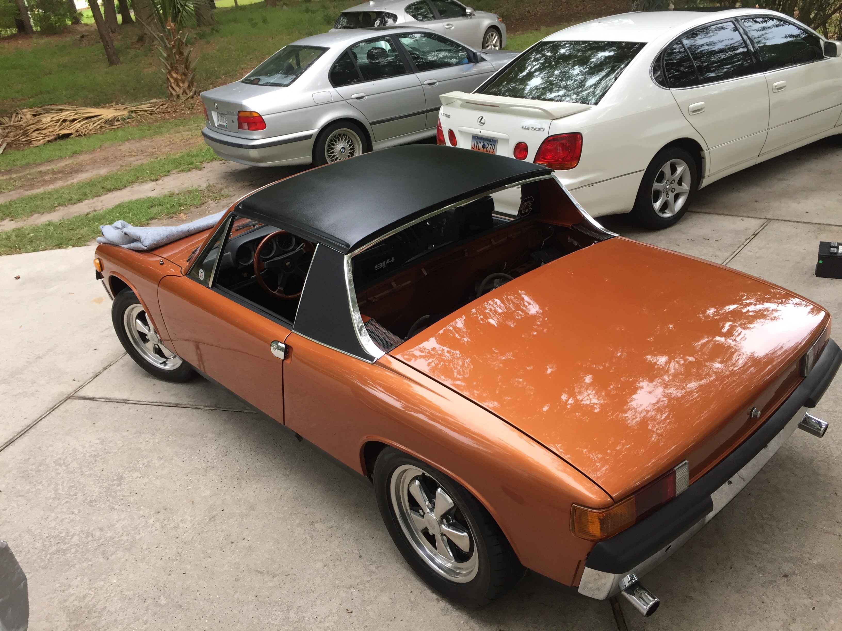 Yesterday i went over to a local guys storage shop , he has a few 911's and a 914 he is rehabbing, and needs to repair the trunk hinge , i have an extra JWest set , made a little trade for a rocker panel and a front window!, anyway while there i saw another rare color- an original '72 911 Gold Metallic- beautiful! its in reassembly now- sorry no picture- does anyone know if any 911 were ever ordred in this Copper metallic? never seen one- So I also will be doing a clean up if the motor- the car runs great, but i get an occasional buck ive got all new tin , going to get the air cleaner re powder coated and the intake runners- i'd also like to get the Triad exhaust jet hot coated too- new steal rocker panels, etc so a few other side projects- i will have a couple months to put some of this together- will be searching for a few parts-- a few years ago i had to re-do all the brakes- m.c. , brake lines and callipers- so while at it that winter i did the front a rear suspension- all new bushings, bearings, shocks and springs , rear control arm pivot shafts and bushings- newly powdercoated a-arms and trailing arms from bruce stone - I actualy have a list of about 2 pages of whats been done already- so really there isnt much left to do but paint- interior was done as well -- I guess i kind of did this all backwards! well difference being ive been driving snd enjoying the car. what i ddint want is to have it on blocks for years. even now i was not going to give the csr to someone who was not going to have id done for a year. thats partly why i waited so long or it took so long to find someone that could get it done in a timely fashion. at soem point at the end i will post all the contributors from this site and others i have had both parts and services. Thats going to be a long list! Now- back to work! |