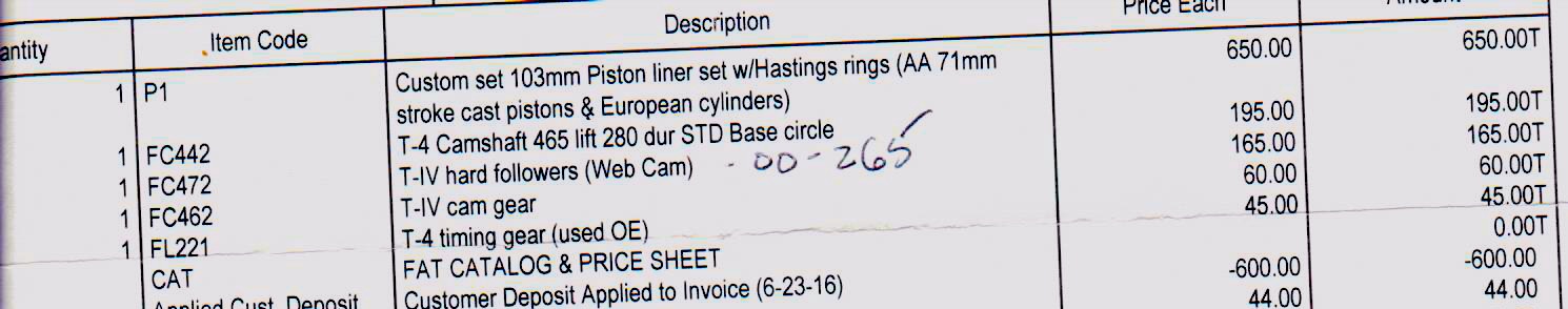 Hmmm, I only ask as the only exp. Ive had with them was rebuilding my the carb on my daughters Festy ... HUGE BILL $$$. I almost walked but they worked with me discounting it. So what are you concerns about Longevity? Are you referring to Iron cyl's? Yes, it wasn't a cheap visit for me either: $400 for several runs and some tuning. They didn't charge me for noticing the VW shop had forgotten to screw down the main jet stack on one of my new DRLA 45s. For what it's worth, here's what the previous owner used: |