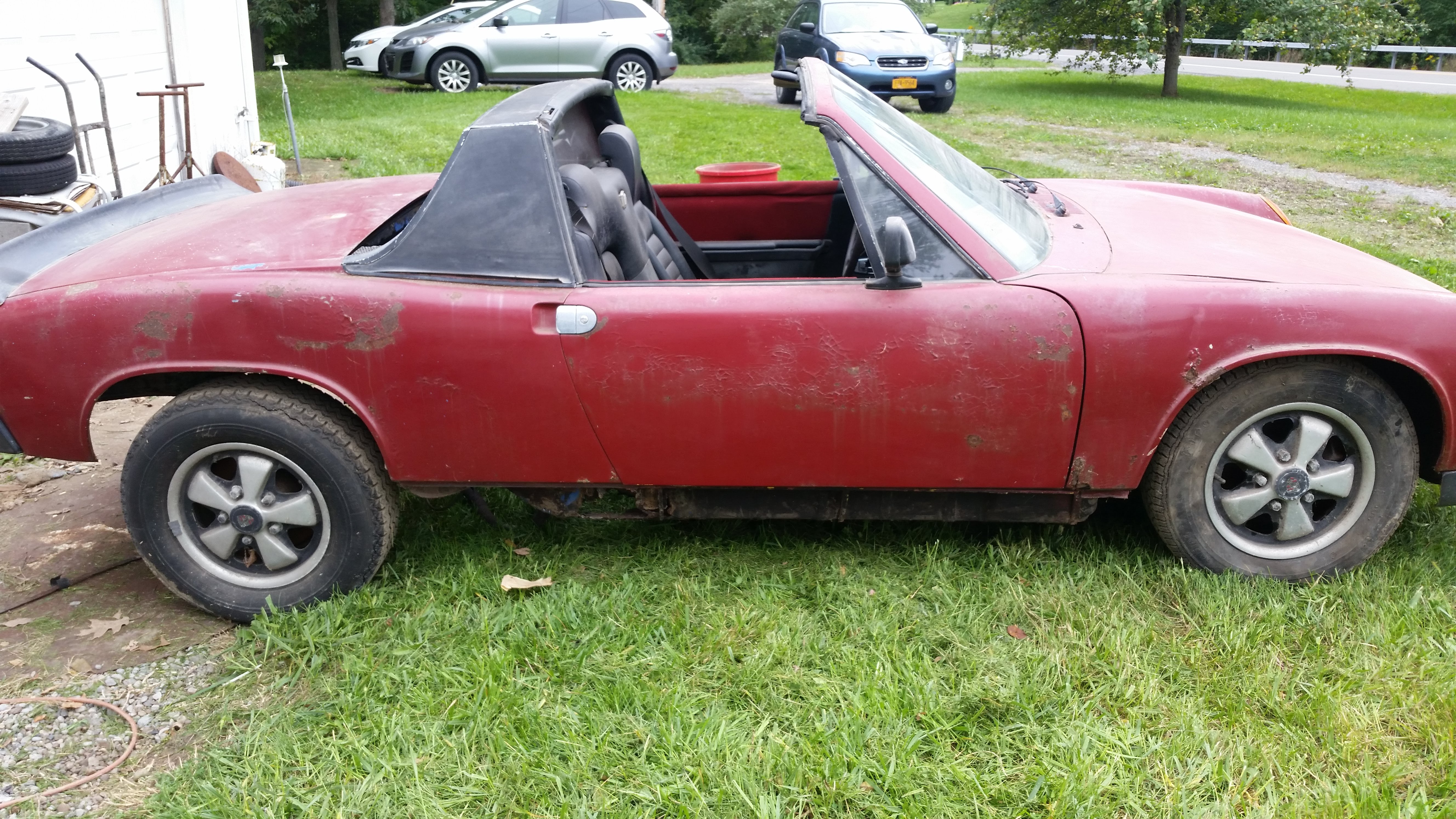 1970 914-6... the car from my high school years.. has not been on the road since 1986. Stored inside all this time. all original parts as far as I know. have all the parts not seen in pics (carbs, carpets...) . Best offer over $20K takes it...I kept it all these years thinking one day I would be able to give it the restoration it deserved...not possible now! Located in Western NY (near Rochester). More pics available... send me a email and I can send you a link I don't want to refute any thoughts or comments here but the door gap and the hole in the long would concern me. Attached image(s)