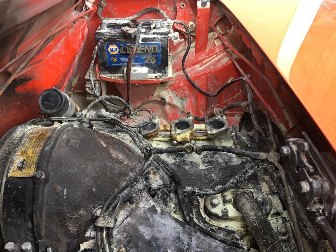 Car suffered an engine fire last summer, my friend called and told me he smelled gas and thought the carbs maybe leaking, I told him not to drive it until he checked it out. Well he took the car for a drive and engine caught on fire. It was extinguished pretty well with 2 hand helds until fire crew showed up. He has decided not to restore it and I think he would be happy to get 40,000 for it but is open.to offers. If I could, I would buy it in a heartbeat. Car is orange and is in Jackson Wyoming. Last summer after it happened he had hoped Eric Shea could restore it for him, but Eric is swamped with projects and wasn't able to take it on, now he has decided that he must part with it. Has the carbs and new rubber kit. Attached thumbnail(s) Attached image(s)