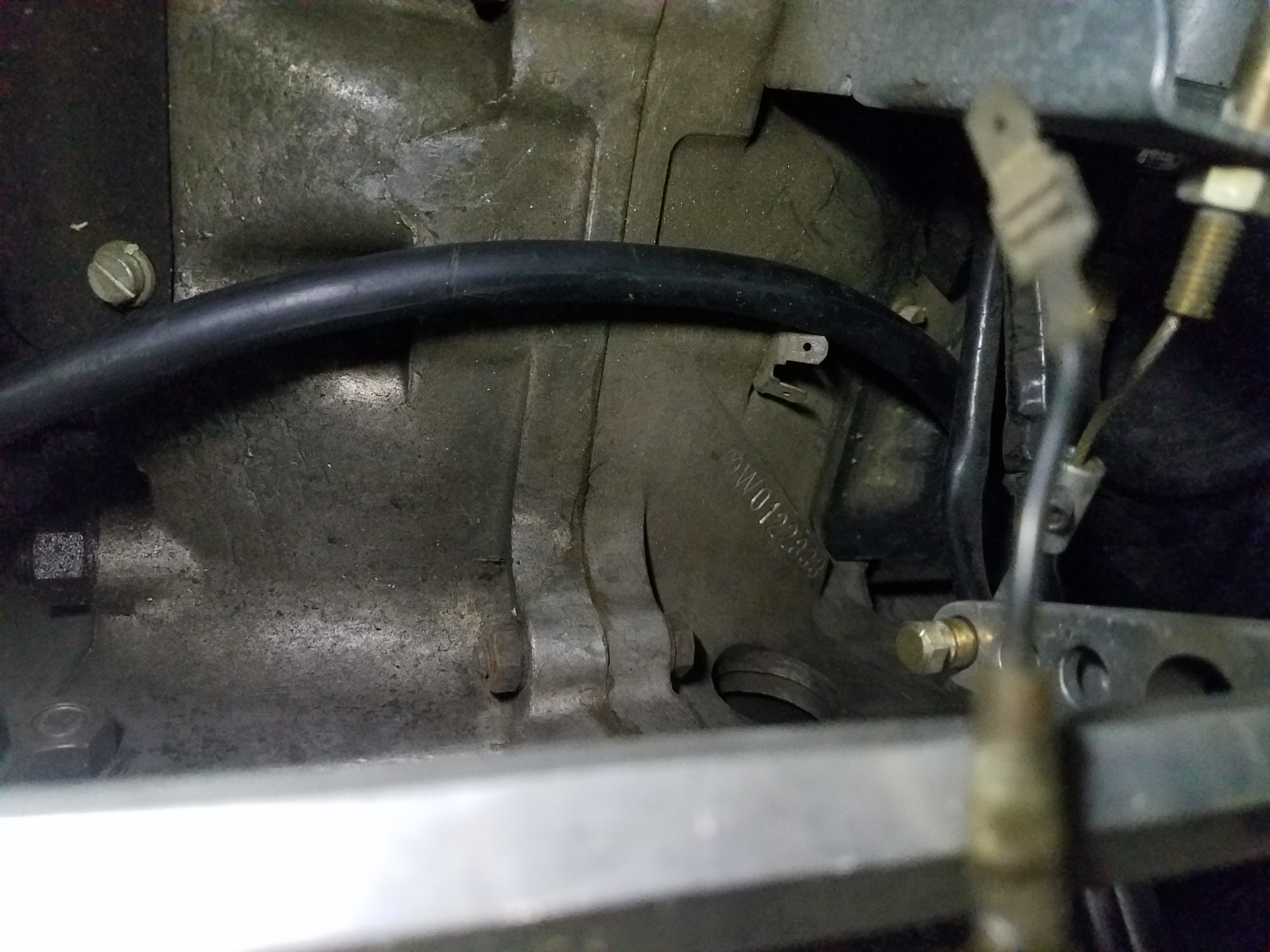 Nothing that can't be fixed but it is still annoying. The silver cable with the red ends in this picture is just a stainless steel cable. It is being used as the ground strap. The white and yellow wires are a home built wire setup for the license plate lights. The green wire is to the starter. |