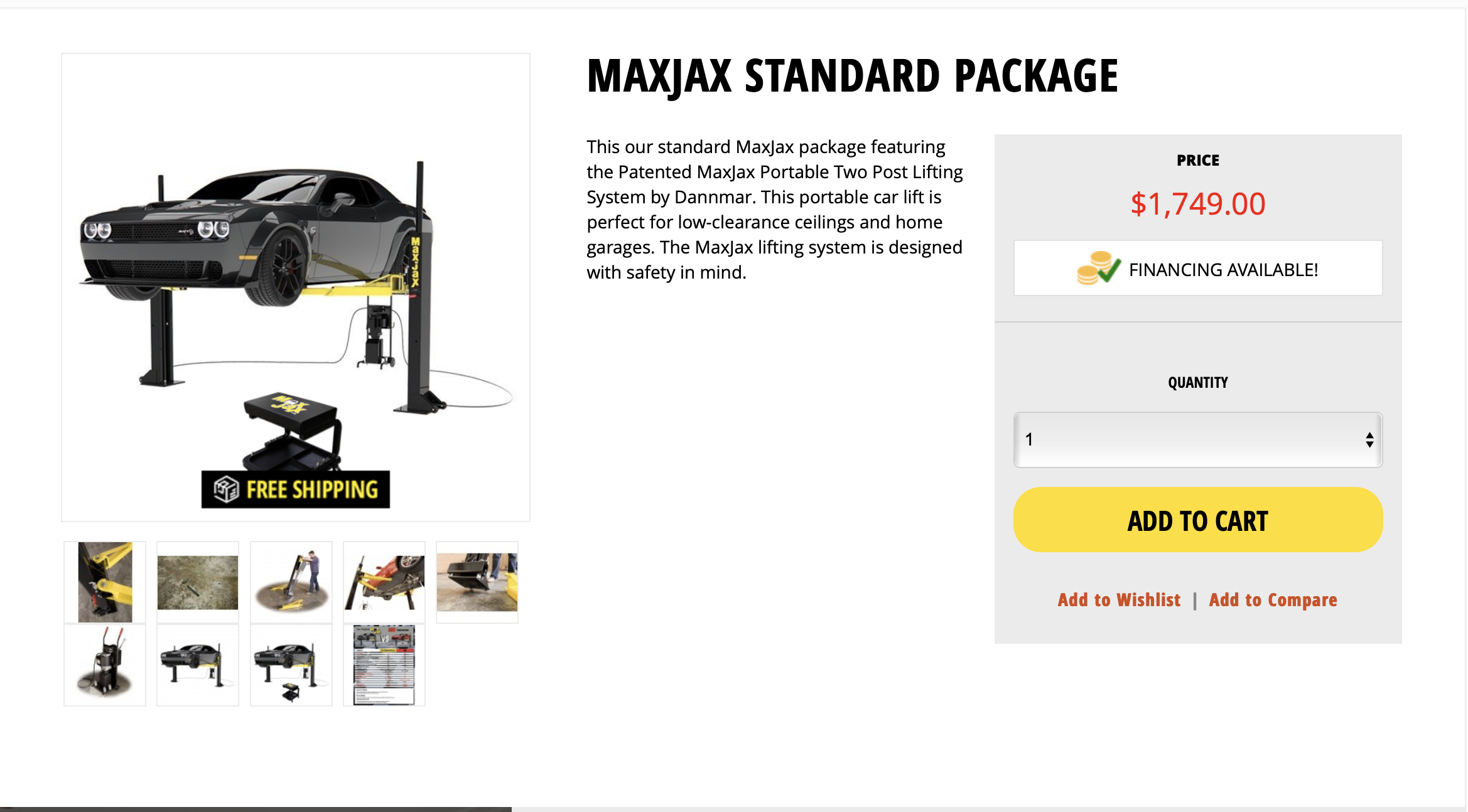 I want a MacJax lift for my garage. I want to buy it Friday/Monday.
