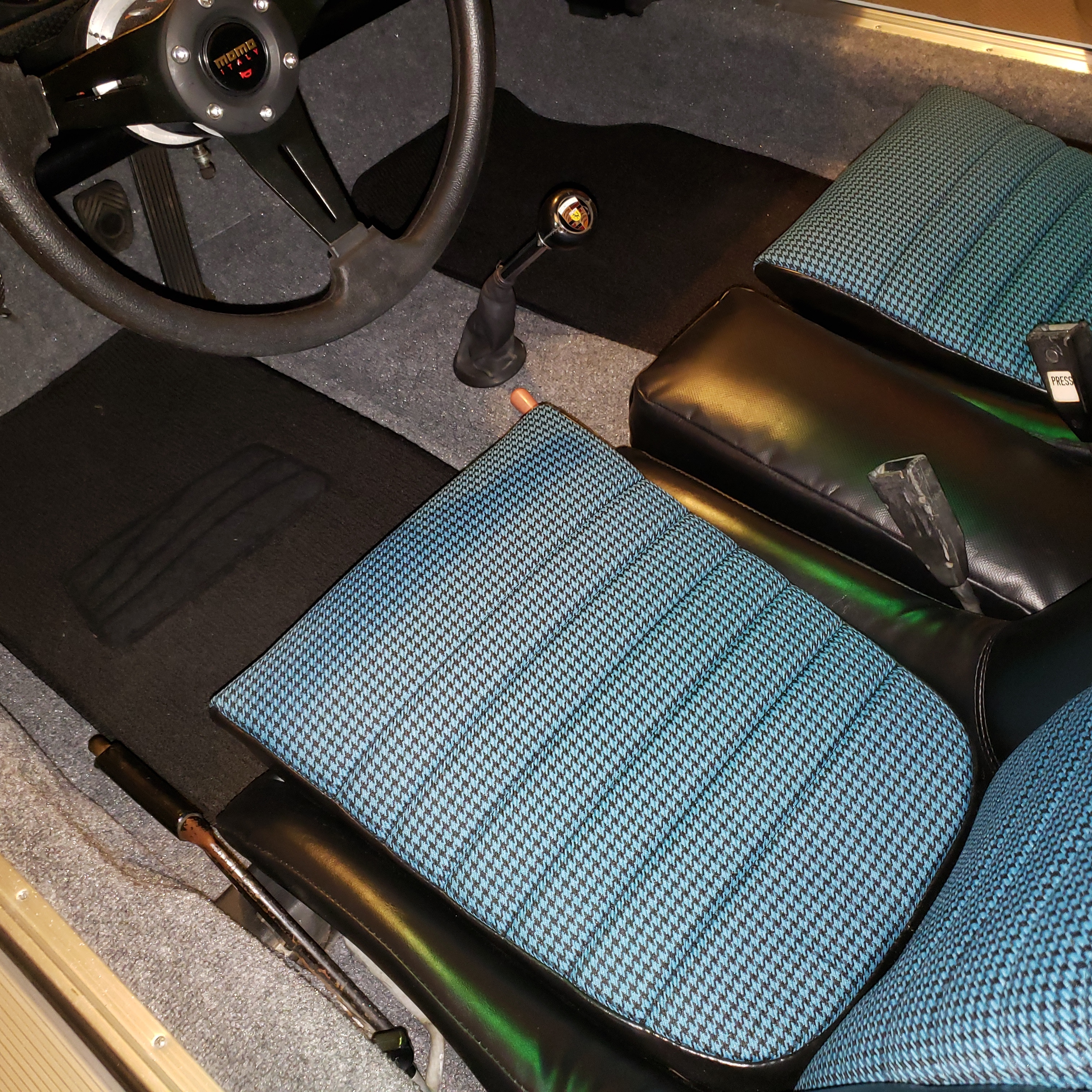 I've been thinking about changing the tan leather seats in BB to a black and red plaid. However, the back pad would need to be changed as well. Has anyone ever experimented with a complimentary backpad color (other than black) to match the plaid seats? A matching plaid backpad would probably be too much. But, would be interesting to see if anyone has tried it. What about perlon the same color as the carpet. Had not thought of that. The carpet is also tan and I have a new black carpet kit in the box I was going to use. But, am open to options. I like the older 911's with the plaid seats and matching door cards. |