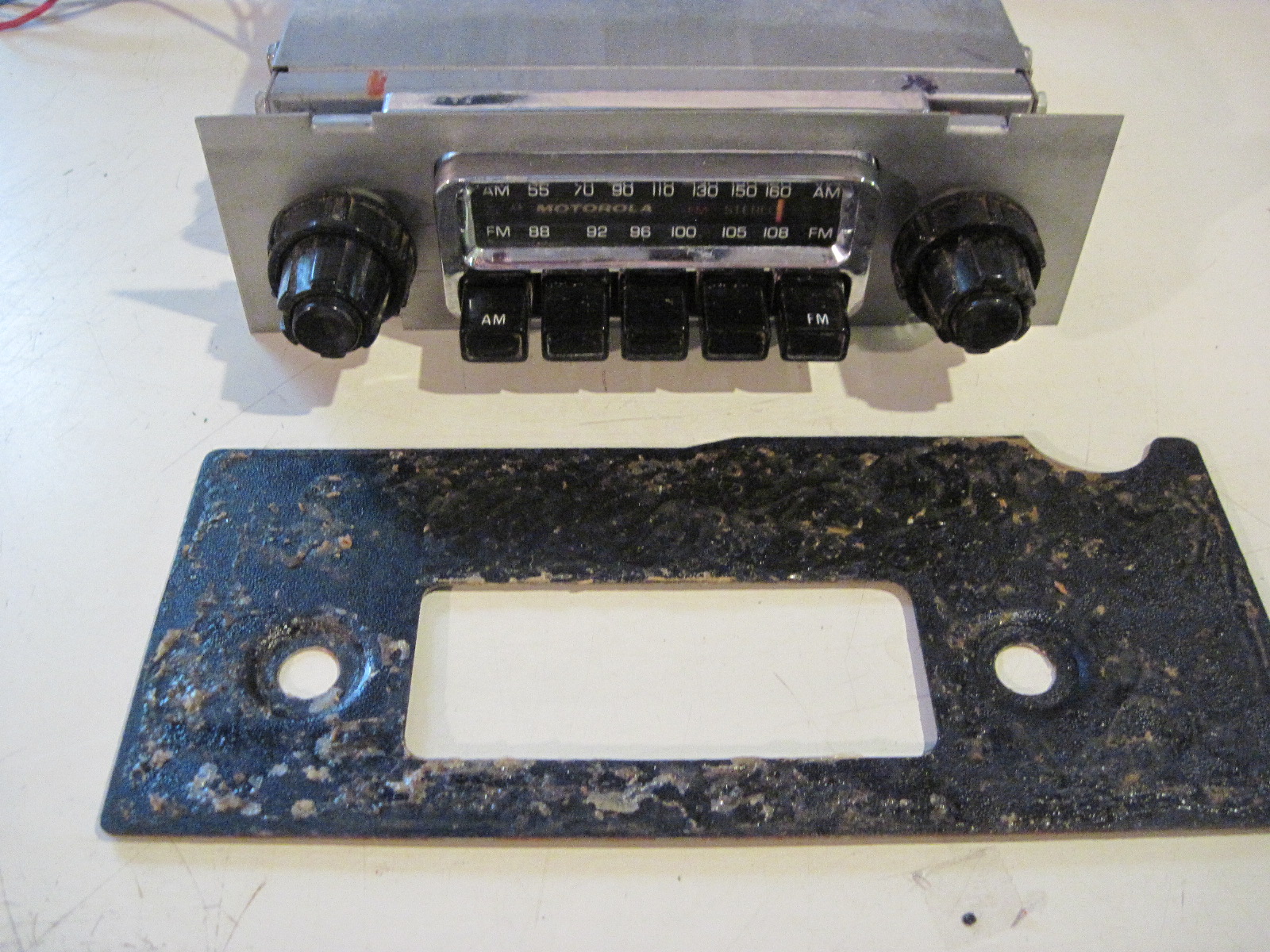 you could send it to Matthias in Germany and he will repair it for you Still have mine, in a box awaiting (30+ years) to get it fixed. Fortunately, the current one has a cassette player so haven't been in a rush to have the original one repaired. Dug it out - it's a Motorola (see photos - dealer installed?) that came with the car when I boght it off the dealer's lot in 1974. Worth fixing or worth anything? Tuner cord/band has dry-rotted so can't change channels with dials or push buttons. Might try to gerry-rig a fix though really do like the current cassette player (mostly Doobie Brothers, Jefferson Airplane, Grateful Dead, Meatloaf and Byrds) |