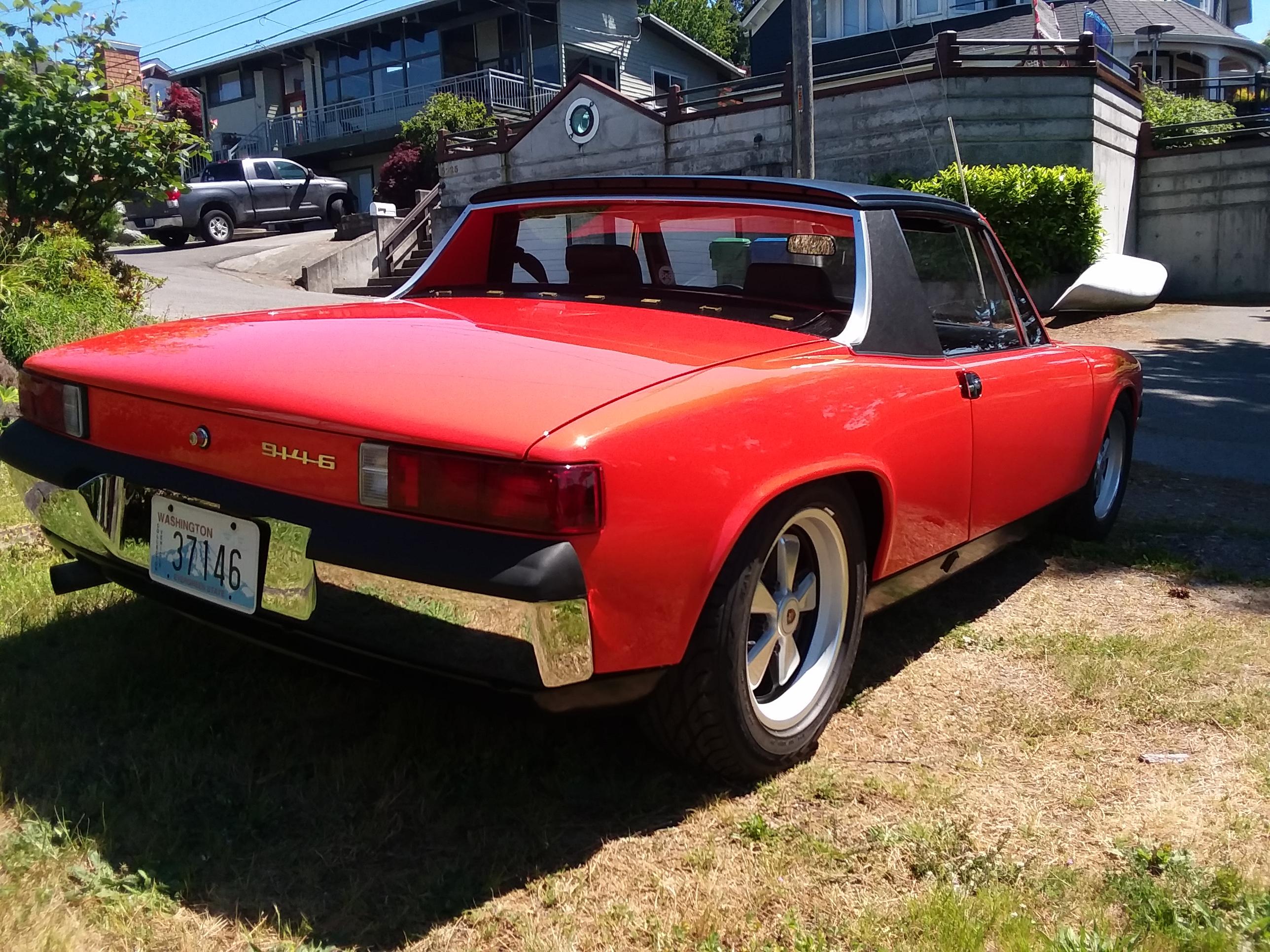 VIN 9140431482. 126500 miles. Non-matching 2.7 liter engine. Original (AFAIK) transmission converted to side-shifter. Car appears mostly stock at first glance, hiding multiple subtle upgrades. Mildly flared fenders accommodate 7X15 Fuchs. Engine pulls strongly to redline and is an absolute blast to drive. Receives many compliments. Always garaged and never driven in rain during my ownership. Car is currently registered as a Collector Vehicle with a clear Washington State title. I purchased this car in January 2012 with the intent to drive and enjoy it for a couple of years while I figured out exactly what I wanted to do, and then bring it up to a high end, driver-quality car. Local Washington State car its entire life, having originally been purchased new at Humphrey Porsche Audi VW in Everett. I believe I am the fourth owner with previous owner taking possession in 1993. Restored and maintained by best available local talent. Competing time demands and recent health issues cause me not to drive it as much as I hoped or should (~500 miles since I got the car back), so it’s time for someone else to have the pleasure. I’ve received a few word-of mouth nibbles but no follow-through, so offering publically here first, then PCA, then BAT. Detailed restoration documentation and maintenance invoices available. Asking price reflects our current economic reality. $59,500. Body/Interior Started no-expense spared restoration in 2014. Paint and body work done by Kirsten Rillos at Rillos Restoration, Kent Wa. Interior by Steve Shepp, Classic Interiors, Ballard Wa. - Full repaint in original Tangerine (23) - Only minor surface rust repair needed in a few spots (above left rear taillight, below windshield frame, etc.). - No structural rust or other body damage. - New battery tray - the only body part that warranted replacement. No damage to longitudinal, underneath. - New Wurth underbody sealant. - Patrick Motorsports rear chassis frame stiffening kit installed to accommodate increased engine HP. https://patrickmotorsports.com/products/bod-914-crk-pmp - All chrome and bright parts re-plated. - New windshield. (Original had scratch marks that wouldn’t come out. No cracks.) - Original rear window defroster. - All new rubber seals. - New seat upholstery, back pad, carpeting. - Original dash in excellent condition. - New CocoMats. - 911-E tachometer to better match engine redline. Original working tachometer comes with car. Engine/Transmission All engine, transmission, mechanical installation and maintenance work performed by Chris’s Geman Auto Service in Redmond Wa. and Aker’s Porsche, Seattle Wa. - New Elgin 306/288-106 camshafts. - New Carrera pressure-fed chain tensioners. - New 1st gear transmission synchro. Rings, sleeves, bushings, and gaskets as needed. - New Classic Retrofit CDI+ (6 Pin). - Original Italian Weber carbs rejetted for 2.7 and new cams. - Powder-coated original heat exchangers. - Oil tank cleaned and hot-tanked. - Fuel tank cleaned, boiled, and resealed. - New Dansk muffler. - New spark plugs, ignition wires, cap, and rotor. - Replaced original plastic fuel line with braided steel line through the tunnel. - New Optima yellow-top battery. - All new fluids, etc. Brakes/Wheels/Running Gear - 7 X 15 Fuchs with RSR finish, restored by Harvey Weidman. - Goodyear Eagle GT 205/60R-15 tires. - 911-S aluminum front calipers. - Genuine NOS 914-6 GT (not cut down 911) rear brake rotors. - All brake calipers restored by PMB Performance. (Spacers installed in rears to fit the wider, ventilated GT rotors.) - New 23mm ATE master cylinder. - Powder-coated suspension components. - Koni shocks. - Tool kit and factory jack. Additional parts, brand-new Covercraft car cover, factory service manuals come with the car. Please PM me if seriously interested. I will do my best to respond on a daily basis, but I’m not in the profession of selling cars so please don’t expect an instant response. Apologies in advance for a few of the crappy cell phone pictures. They were the best I could manage at the time. Additional pictures and short running videos available upon request. Thank you! - MR A couple of PRE-restoration and engine ready for re-install pictures, below. Attached thumbnail(s) |