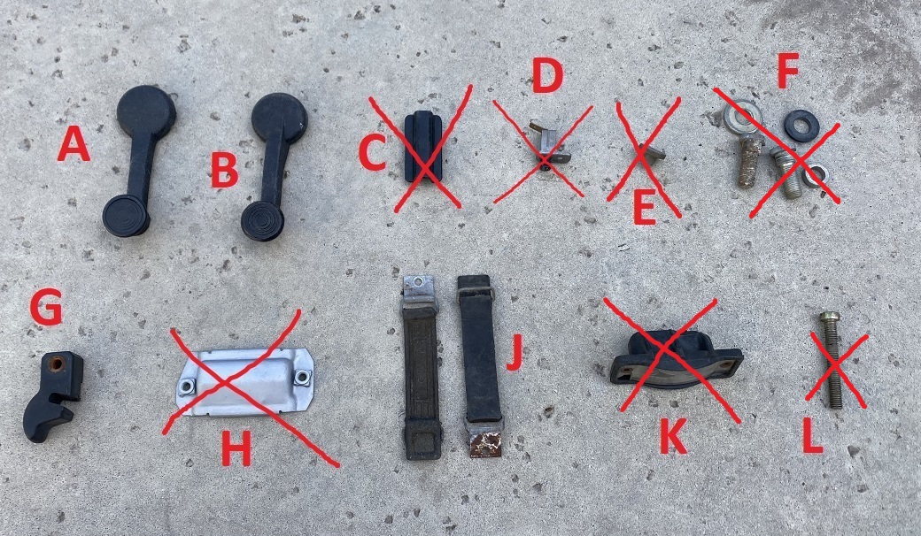 ![]() A) Window winder: $4 B) window winder: $4 C) 14 pin connector plastic cap: SOLD D) handbrake switch:SOLD E) relay board cover knurled nut: SOLD F) seatbelt bolts and spacers and washers:SOLD G) used targa top rubber clip- no cracks: $5 H) heater duct clamp (narrower one): SOLD J) tool roll rubber straps (no breaks yet!): $6 K) early type license plate light, one crack across lens: SOLD L) special screw for fuel tank saddle clamp:SOLD All parts plus actual shipping. thanks! Carl |