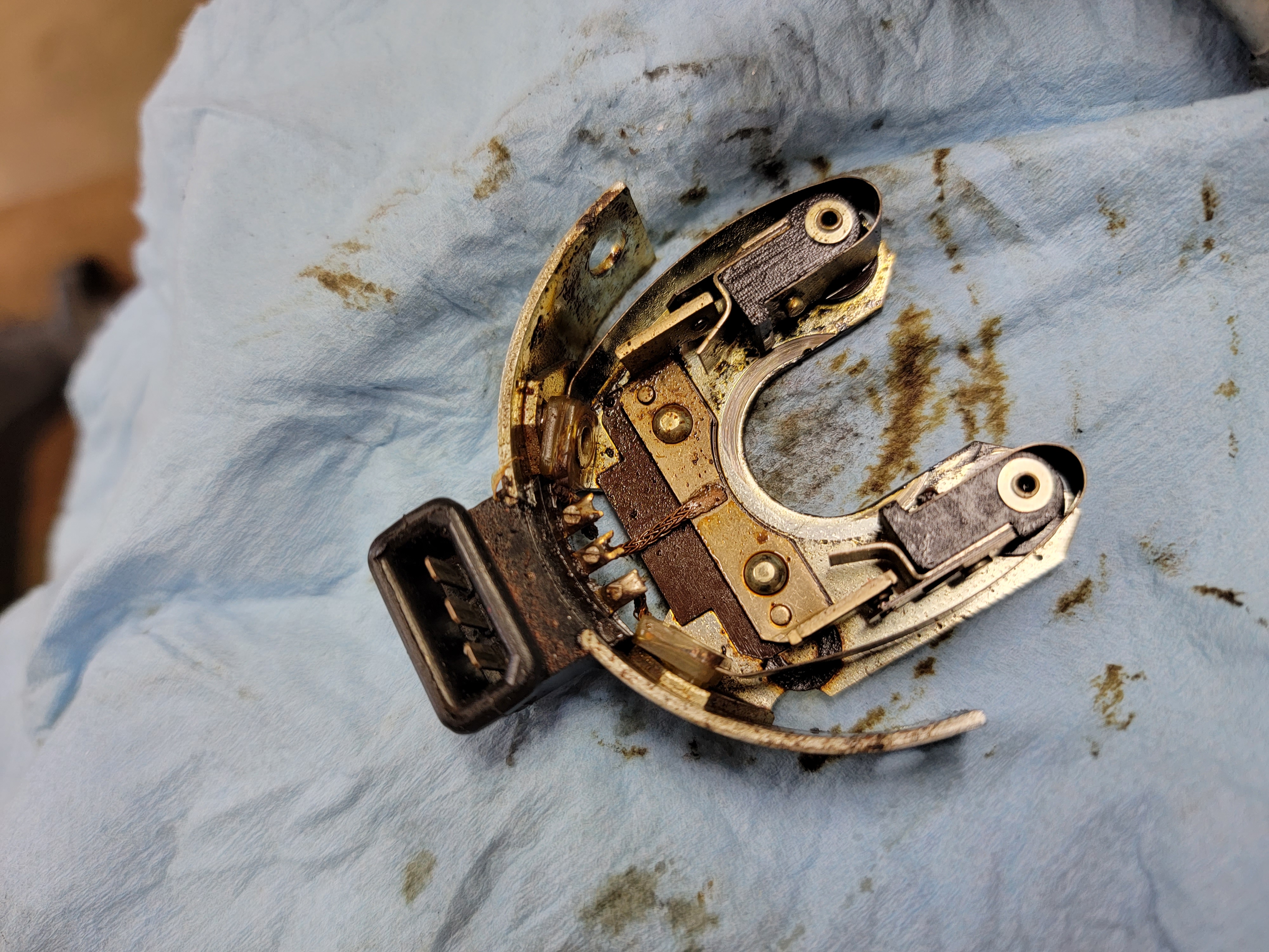 It’s the advance plates that the points mount to that get stuck in the wrong position and cause strange idle conditions.