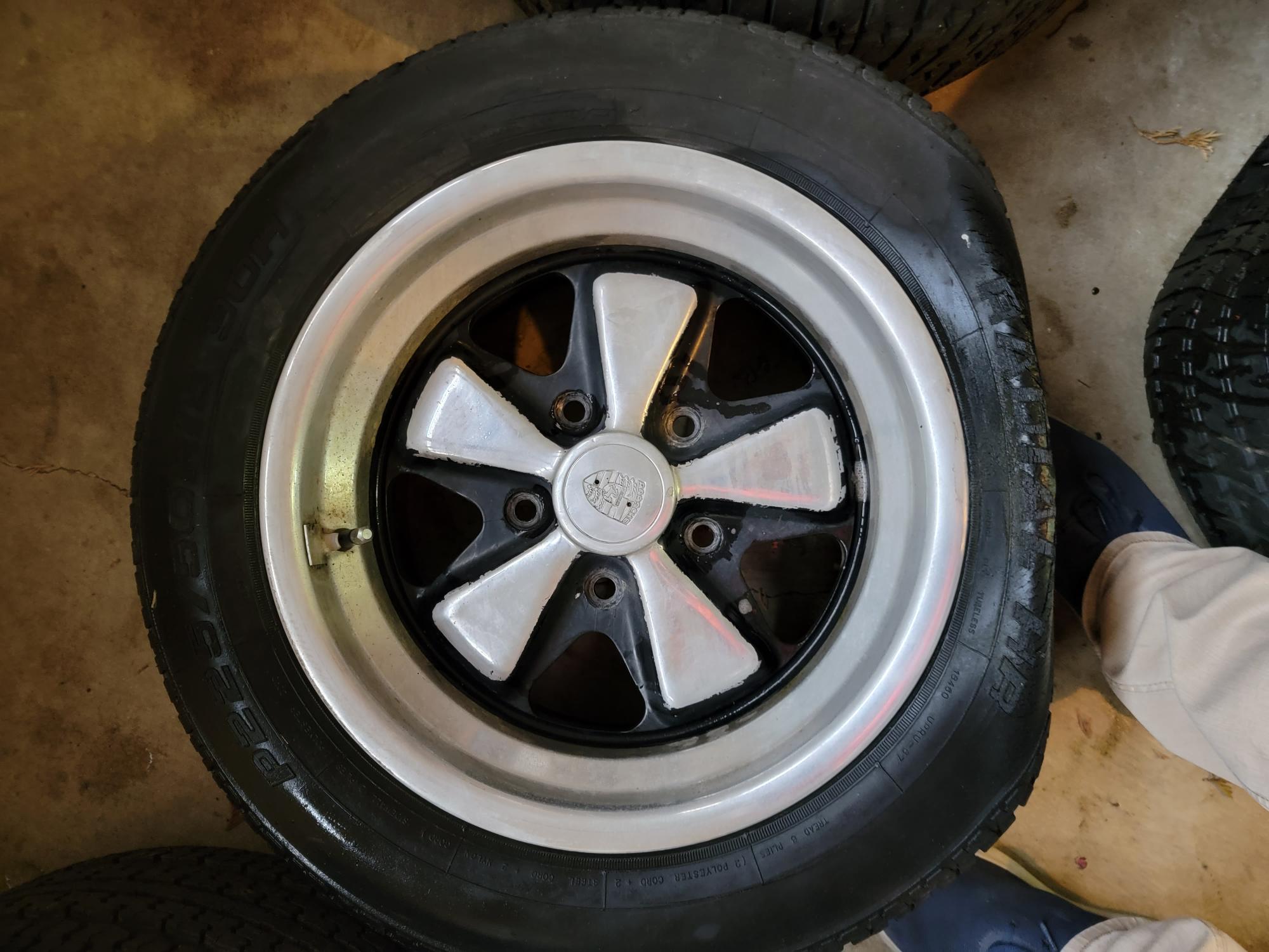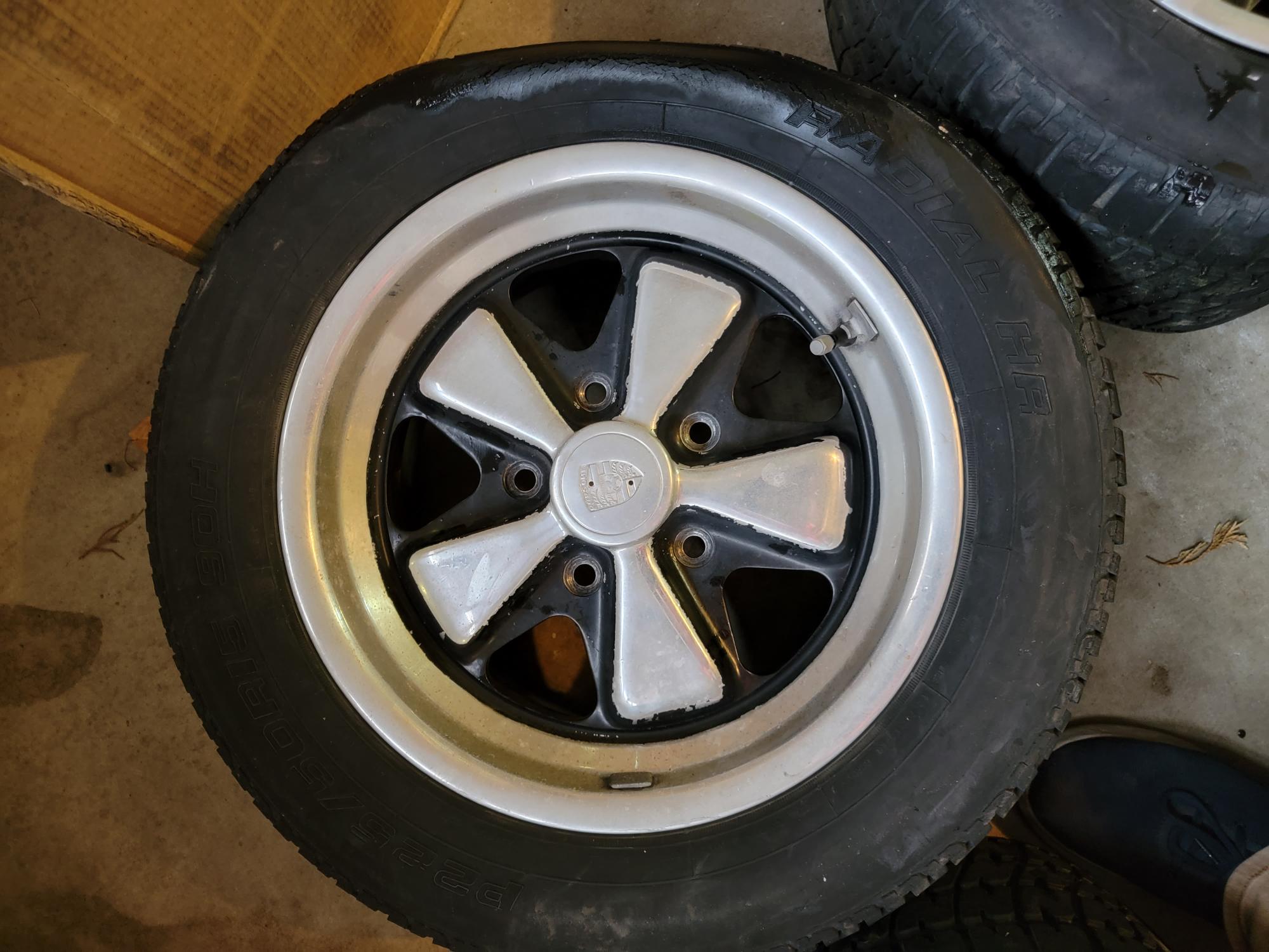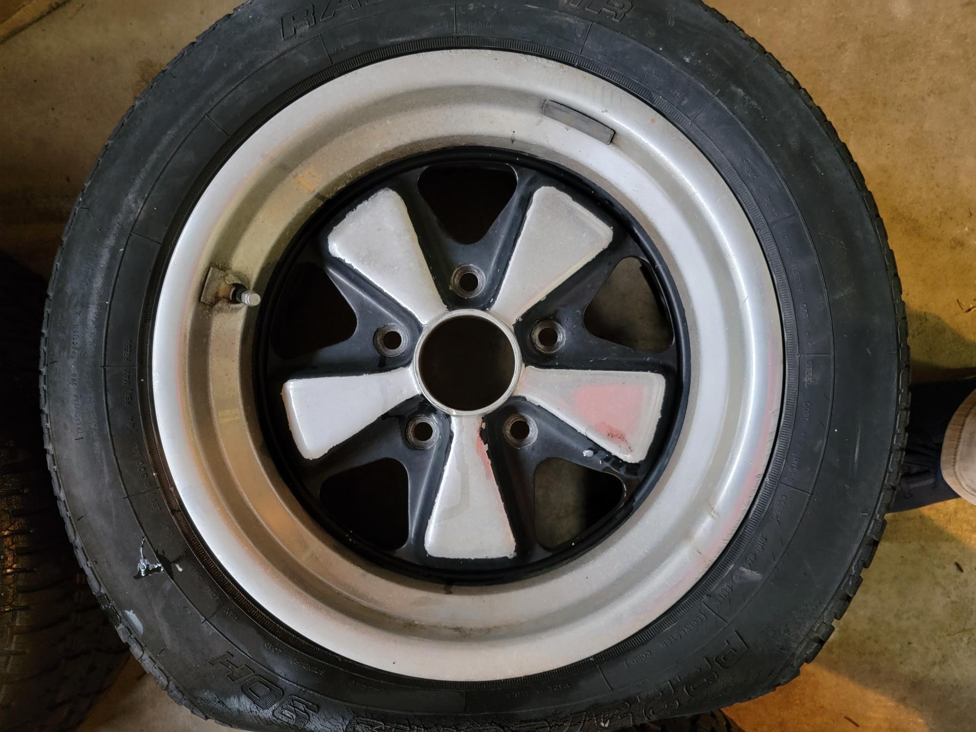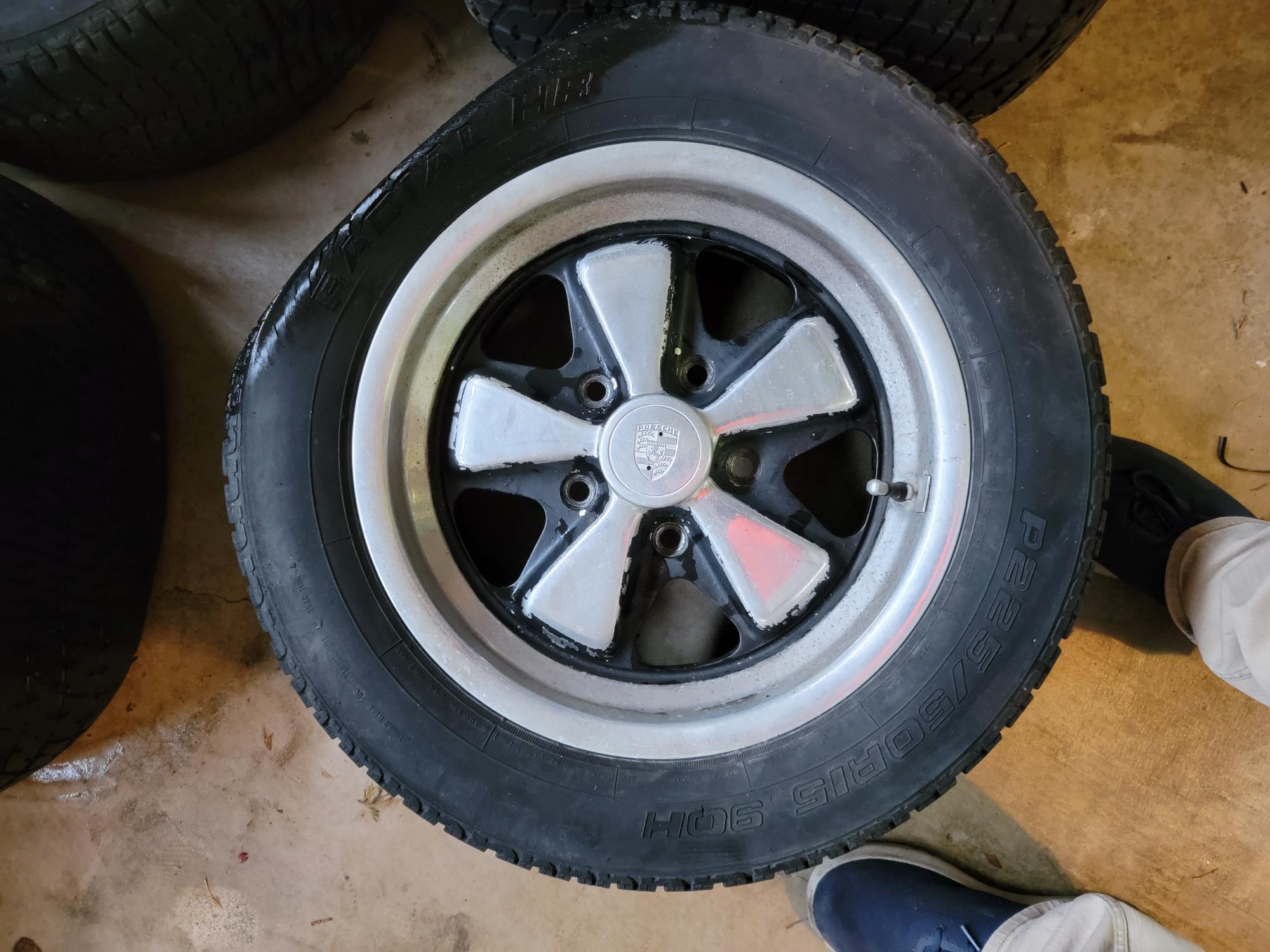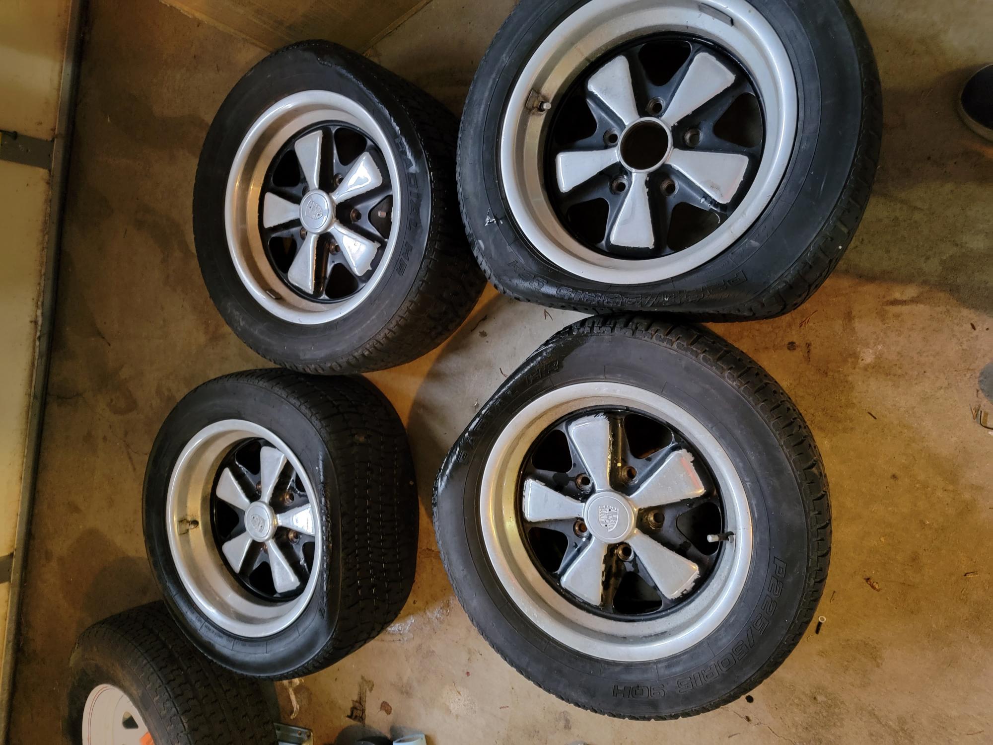 Here is a set of 15x7 & 15x8 Original Fuchs. These came off a 85 944. 911 serial numbers on back of the wheels. There is some very minor curb rash on one wheel with a little heavier on a 2nd wheel. Annodizing still in good shape. Paint could use a refresh. Tires are shit & will be removed. Missing one center cap but I can include a silver one but it isn't a polished one like the others. These are great wheels that would look killer with really minor work