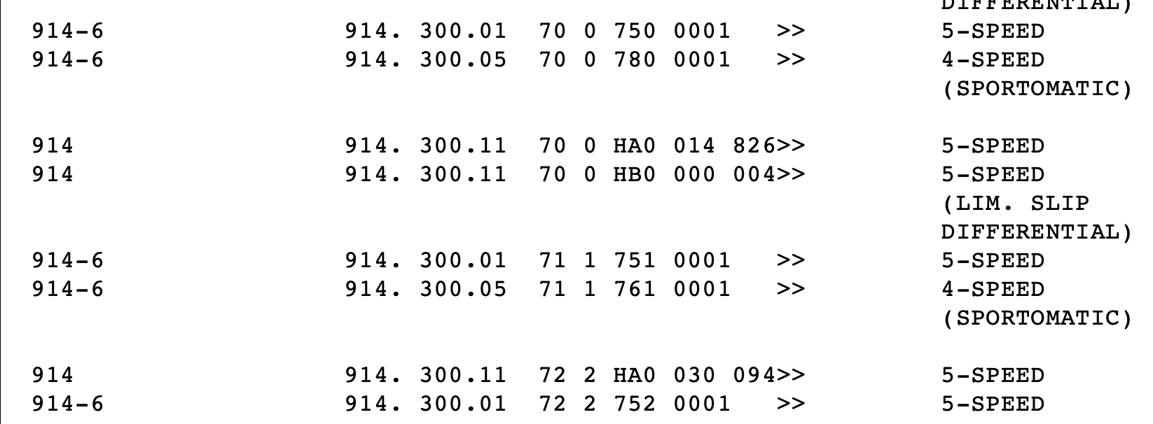 Search for the user Gustl he asked the same question and the answer was the number 914/01 10 for the first line says LSD 10 indicates 80/20 whereas 12 would indicate 60/40 slip settings. Thanks for that suggestion. I think I found the thread you're referring to. Since there are no numbers following the 914/01, that suggests it is NOT LSD. Thank you. ![]() |