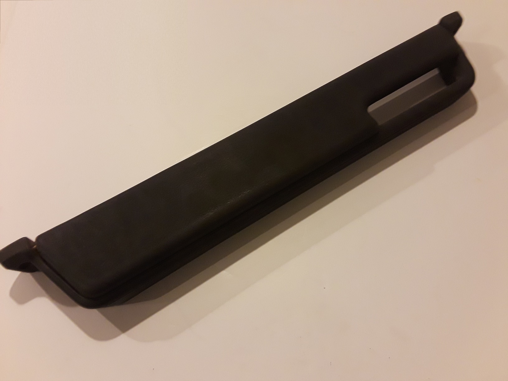 I'm wanting to buy a replacement door box. Mine is not in bad shape, but the top part that looks like a sun visor is pretty bad. I tried painting it with black gloss vinyl paint and it's an improvement but wondering does anyone make a replacement part Is the lower part in good shape? I have several tops that outlived the OE pressboard lower section. |