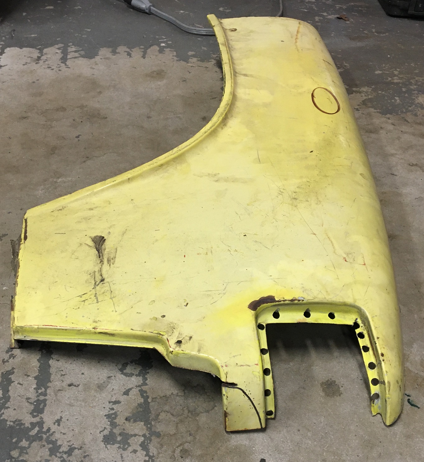 I have this... Very small dent sharpie circled. Located in SoCal. This looks promising. Do you know exactly where the cut was made along the top? How far from the gasket channel edge? Using a thin disk on my 4" angle grinder, I cut along the vertical edge to use the gasket channel. My donor fender was missing it (IMG:style_emoticons/default/dry.gif). Pretty detailed operation on my build thread, especially post #87. http://www.914world.com/bbs2/index.php?s=&...t&p=3043001 The part is dirty in the picture but it is actually a good piece. I had a similar situation but elected to replace the whole fender. I am not a good welder and don't use TIG, so I wasn't pleased with the idea of having welds to deal with in bodywork. Let me know if you have other questions. (IMG:style_emoticons/default/beerchug.gif) |