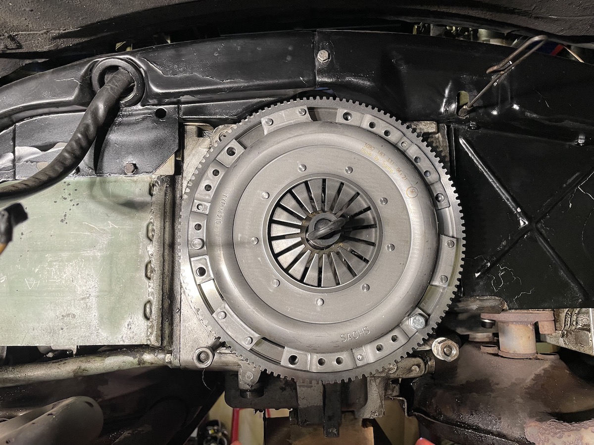 That's very cool, both your story and Speedy. Keep it coming. Mark Thanks, the initial list of projects is nearly done. I even managed to add ~50 miles to the odd on the maiden voyage last weekend, but I'm getting ahead of myself. On of the first items of business was to remove the rear bump and send it off for chrome. I know this process can take a long time and I wanted to get ahead of it. For as long as I can remember the chrome was flaking off to the right of the license plate and it was the first thing I saw every time I looked at the rear profile. So off came the bumper and I shipped it off to beautiful sunny CA so ValcoOscar on these boards could work his magic. The next order of business was to tackle what I assumed was a very leaky RMS bearing. The clutch had recently been slipping and I was pretty sure an unexpected hot oil bath was the culprit. So I drained the oil, dropped the tranny, removed the PP, clutch and flywheel. And would you believe it, the RMS looked decades old, bungled up, and clearly leaking oil all over the clutch and adjacent parts. Here's a picture after I cleaned up decades of caked on oil - at least most of it. The old seal came out quite easily. Getting the new one in wasn't as simple. The countless threads and videos I referenced online showed folks gently tapping it in with a rubber mallet and a block of wood. That wasn't working here, and believe me, I was using the finest piece of leftover scrap wood I could find in my garage (IMG:style_emoticons/default/smile.gif) I learned online for a mere few hundred dollars I could purchase the "official" RMS installation tool. I'm all for buying new tools, but not one I'm going to use once this decade. So, I made a trip to Lowe's and scavenged the aisles to see what I could repurpose to build my own tool. I crossed my fingers that an employee didn't ask me what I was looking for, as 9 times out of 10 they don't understand what I'm trying to do or why I'd use a (insert unrelated product) to work on an old car. After 10 minutes searching the aisles I struck gold. In the electrical section I believe. Armed with my makeshift install tool, the seal went in relatively easy. From here I reminded myself that the clutch was heavily oil soaked and needed replacement. The pressure plate wasn't looking great either. It also appeared that the flywheel had been penetrated with oil and was pretty worn. Out came the CC and I placed an order for parts. A week or so later they arrived and I made quick work of installing them. In went the flywheel. Then the clutch. Then the pressure plate. I reinstalled the transmission and checked the first block of work off of my list. Only 47 other projects to go.... |