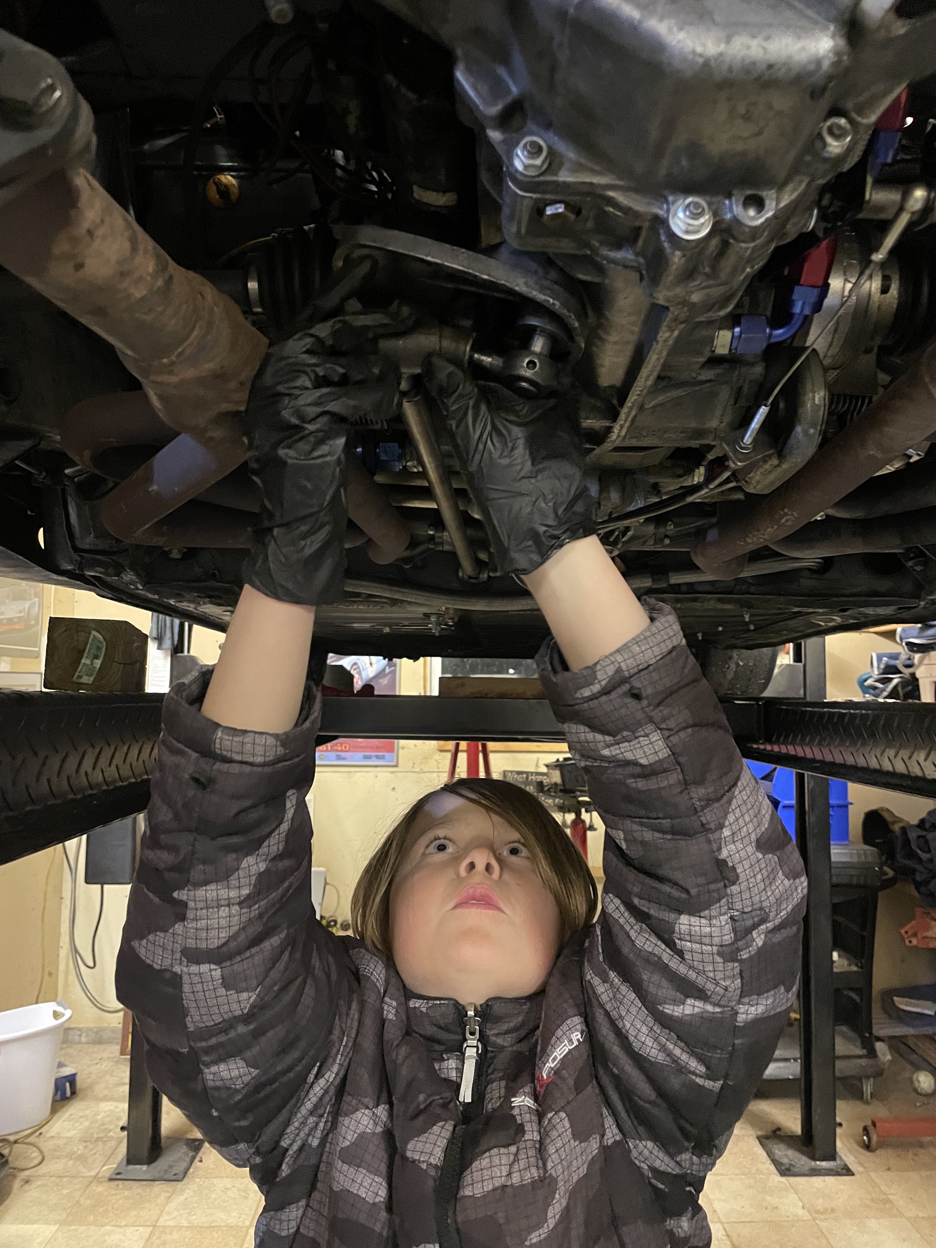 I pressed in the hub and then struggled to get the axle back in place. I've done this job many times without issue, but it seems that the effects of working in my sweat lodge of a garage (It was low to mid-nineties and very humid at the time, and surely a lot hotter in my garage) I failed to get the hub pressed in completely. As such the splines wouldn't slide in appropriately and a lot of cursing ensued. I even removed the output shaft from the transmission to give myself more room and angle to work with, but it was fruitless. Alas, once I realized the hub needed to go in a bit further everything went together quickly. ![]() I broke out my handy dandy five foot cheater bar, tightened the axle bolt to good and tight, installed a new cotter pin and dropped the car back on the ground. Up next, adventures in master cylinder replacement and, with the help of my 11 year old shop apprentice, I tackle the RR wheel bearing (which after removing clearly needed replacing). |