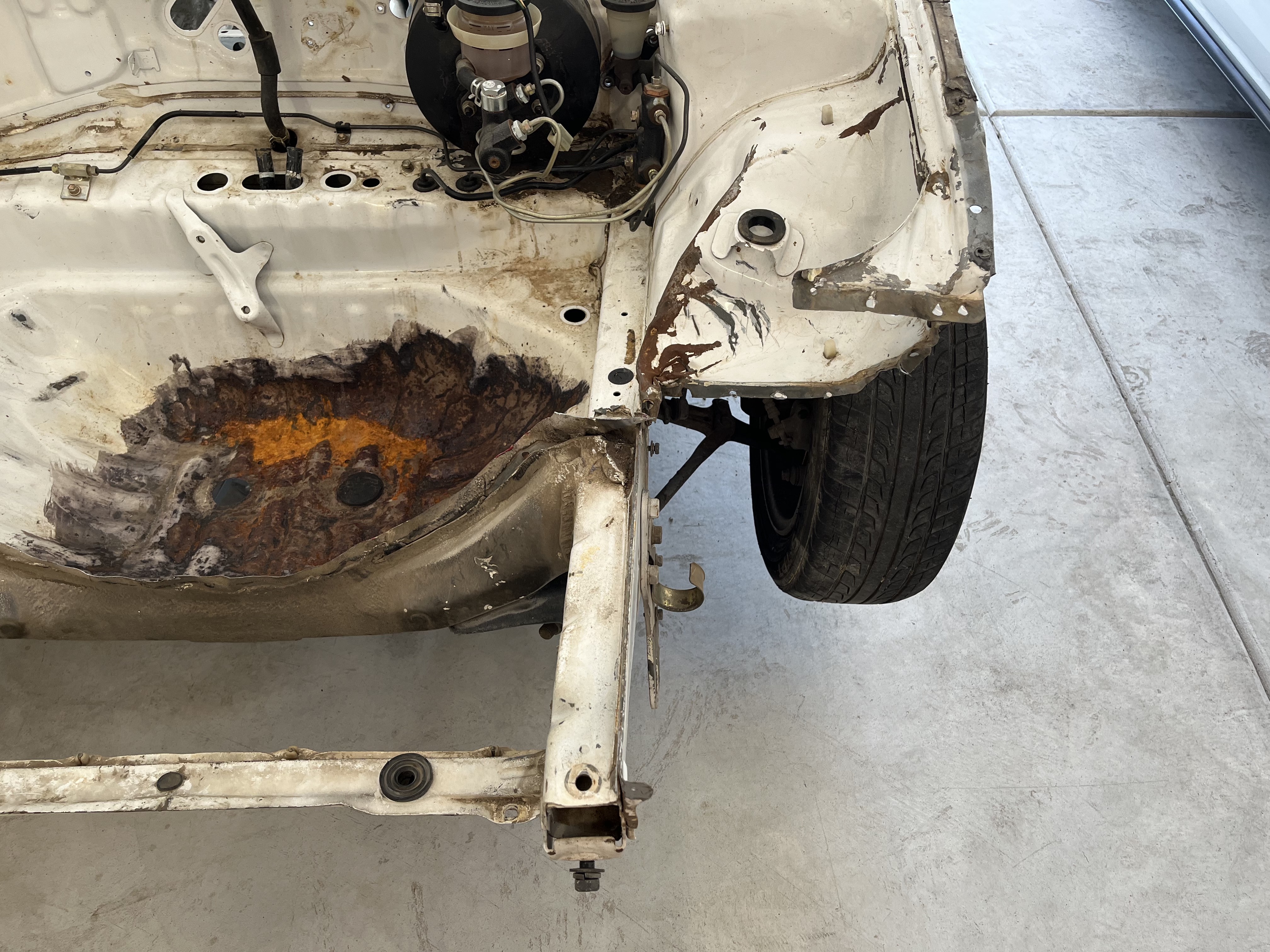 He bought this as a roller, but otherwise mostly complete. The body is almost rust-free--just like a 914! And it once had a collision front left, with a crappy repair (I know about that).
