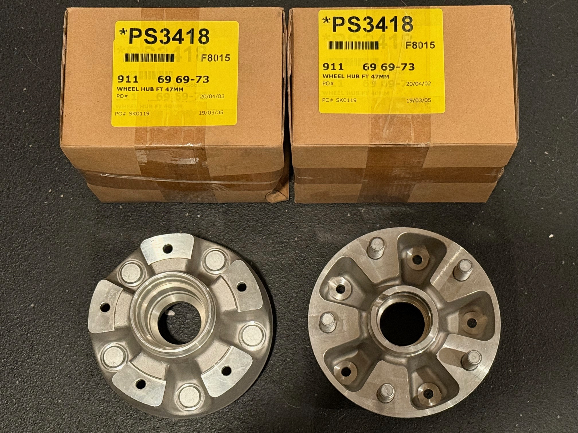 911 hubs new in box. 69-73 model year. Perfect for your 5 lug conversion. Retail is $600/pair. Offered at $395 + 25 usps priority. PM me or email - Mark@MarkEpstein.net to purchase
