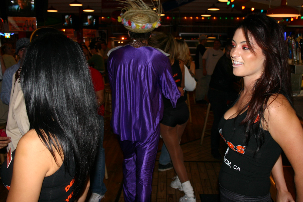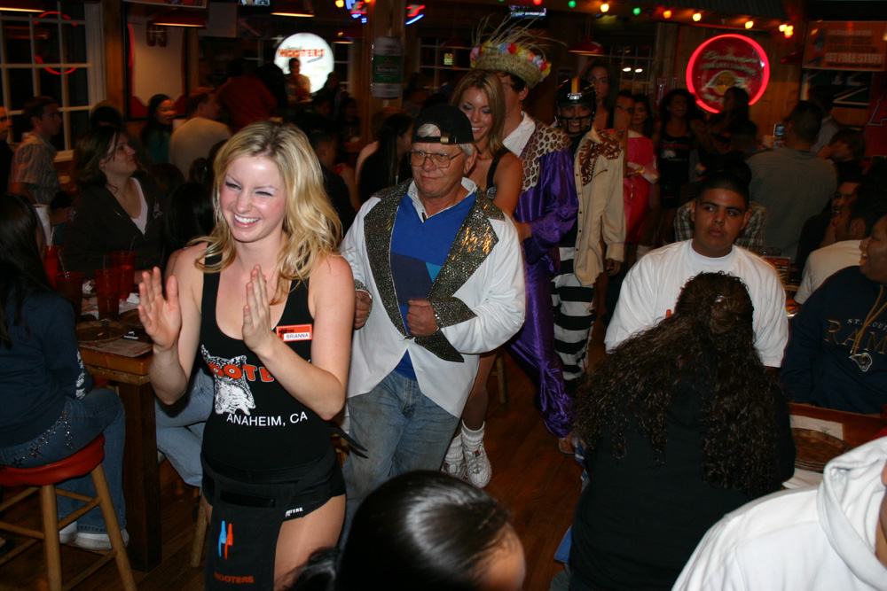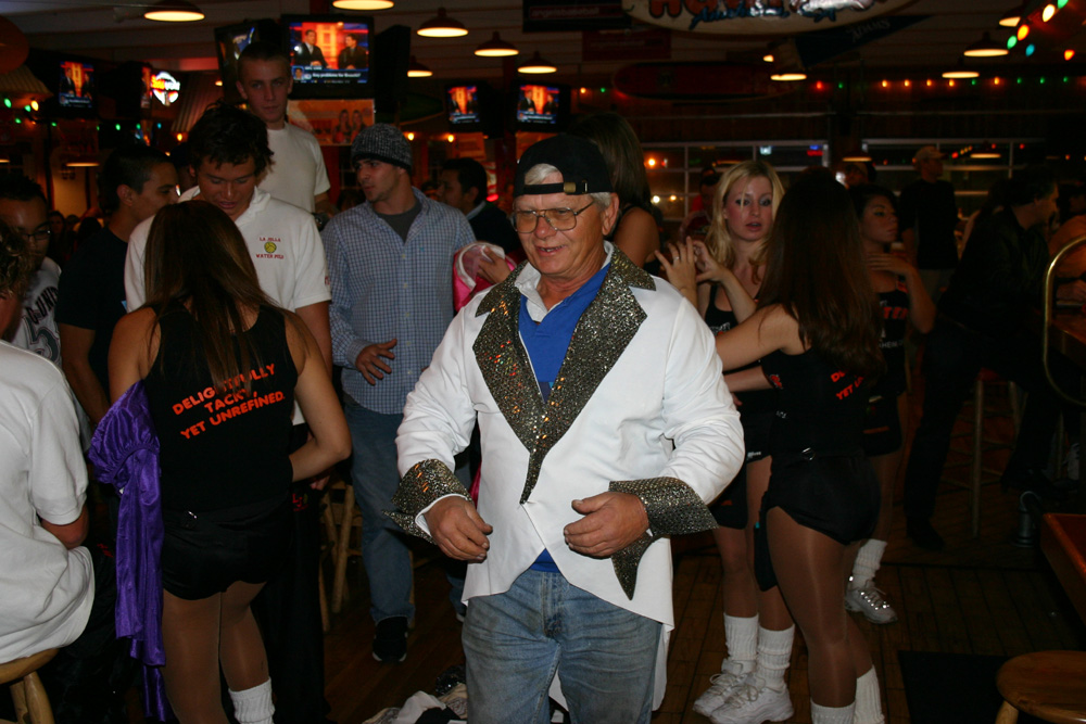 Ron pulling the Hooters Train. Someone convinced the Hooters folks that it was his birthday. Who the hell knows??