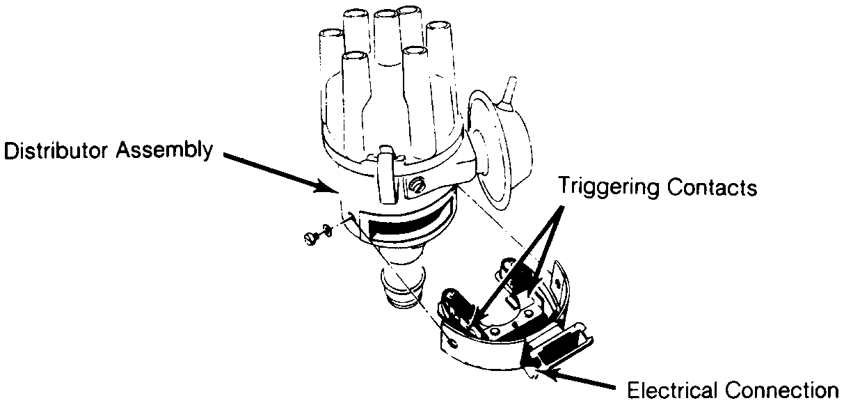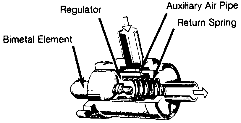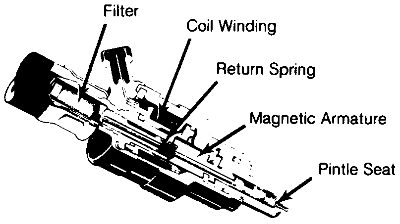 MANIFOLD PRESSURE CONTROL SYSTEM (MPC) Mercedes-Benz: 280, 300, 350, 450 Porsche: 914 Saab: 99E Volkswagen: Type 3 & 4 Volvo: 1800E, 1800ES, 142, 144, 164E DESCRIPTION The Bosch D-Jetronic electronic fuel injection system is composed of 3 major subsystems: the air intake system, the fuel system, and the electronic control system. The D-Jetronic system uses constant fuel pressure and flow, so that only injection duration needs to be modified to control air/fuel mixture. The D-Jetronic system measures incoming airflow by monitoring intake manifold pressure. Engine speed, temperature, and other factors are monitored for the purpose of fine-tuning injection duration. An auxiliary air valve, cold start injector and thermotime switch aid in cold starting and operation. OPERATION FUEL SYSTEM An electrically driven fuel pump forces fuel through a filter, into the main system. Main system consists of one injector for each cylinder, a cold start injector and a pressure regulator, which maintains fuel pressure at 28 psi (2.0 kg/cm2). A secondary system carries excess fuel from the pressure regulator back to fuel tank. ![]() Fig. 1: Sectional View of Fuel Injector ![]() Fig. 2: Sectional View of Cold Start Injector AIR SYSTEM Intake manifold, connected to an intake air distributor, supplies the cylinders with air. A pressure sensor is connected to intake air distributor. The pressure sensor operates according to difference in manifold pressure and atmospheric pressure and signals control unit accordingly. A throttle valve, operated by accelerator pedal, is located at the mouth of the intake air distributor. The throttle valve and intake air distributor are connected to air cleaner by an air duct elbow. The idling air system is in the form of a by-pass system located between the air filter and air intake distributor. Its size can be varied with an idling air adjusting screw. An auxiliary air line, from air cleaner (auxiliary air valve), to intake air distributor forms the warming-up air system. Its volume is varied, depending on engine temperature, by the auxiliary air valve. ELECTRONIC CONTROL SYSTEM Electronic Control Unit Control unit regulates the correct amount of fuel to be injected, depending on engine speed, intake pressure and engine temperature. When ignition is switched on, control unit receives its operating voltage directly from battery, via voltage supply relay. It also controls the fuel pump, which normally is provided with current from pump relay, only with engine running. A time switch, in control unit, allows fuel pump to run approximately 1 to 1.5 seconds after ignition is turned on, The control unit is connected to all sender units by a special wiring harness, coupled to a multiple plug. The control unit is usually located inside vehicle under the dash, under one of the seats or in the trunk. Pressure Sensor The pressure sensor is located in the engine compartment and is connected to the intake manifold by a vacuum hose. This sensor controls the basic amount of fuel to be injected, depending on pressure in the intake manifold and load on the engine. Air Intake Temperature Sensor The air temperature sensor provides control unit with information about air temperature, so that control unit can increase the injection quantity as necessary at low intake air temperature. This compensation ceases when intake air temperature is greater than 68°F (2O°C). Engine Temperature Sensor The engine temperature sensor provides the control unit with information about coolant temperature (cylinder head temperature on VW). This enables control unit to adapt injection interval and determine how long the cold start injector should remain open during cold starting. Triggering Contacts The triggering contacts are located in the distributor. They provide signals which determine when and to which cylinder fuel is to be injected. The contacts also supply information concerning engine speed to determine the amount of fuel that needs to be injected into the engine. ![]() Fig. 3; Triggering Contacts & Distributor Throttle Valve Switch The throttle valve switch is mounted on the throttle housing. This switch signals the control unit of throttle position. During deceleration, above 1500 RPM, throttle switch cuts fuel supply off and below 900 RPM, fuel supply is turned on. ![]() Fig. 4: Throttle Valve Switch Assembly Auxiliary Air Valve During cold starts, the auxiliary air valve opens to allow additional air into the inlet duct. As engine heats up, a bi-metallic element expands and closes valve. At approximately 140°F (80°C) the auxiliary air pipe is completely closed by the valve. ![]() Fig. 5: Auxiliary Air Valve Assembly TROUBLE SHOOTING PRELIMINARY CHECKS Prior to trouble shooting the fuel injection system, check the following items: *Battery condition. *All electrical connections. *Hoses or mating surfaces for vacuum leakage. *Fuel lines for leakage. *Ignition system. *Idle speed and mixture. TROUBLE SHOOTING Engine Will Not Start, Fuel Pump Inoperative Check the following: Defective fuse, fuel pump. fuel pump relay, main relay or electrical circuit. Fuel pump relay should click when ignition is switched on and off. Should have voltage from main relay terminal No. 87 to fuel pump relay terminal No. 86. Fuel pump relay terminal No. 85 should have good ground from ECU. NOTE *Fuel pump operates approximately ½ to 1 second after switching ignition on. Relay is grounded from ECU. Ensure fuel pump operates during cranking. Engine Will Not Start, Fuel Pump Operates Check the following: Defective wire to starter terminal No. 50, Manifold Pressure Control (MPC) sensor and/or wiring, temperature sensors and/or wiring. Inadequate pressure in main fuel system, wire connector for distributor contacts disconnected and/or open circuit. Pressure should be 28 psi (2.0 kg/cm2) with starter operating. Engine Starts, Then Stalls When Cold Check the following: Defective trigger contacts and/or wiring, MPC sensor or temperat