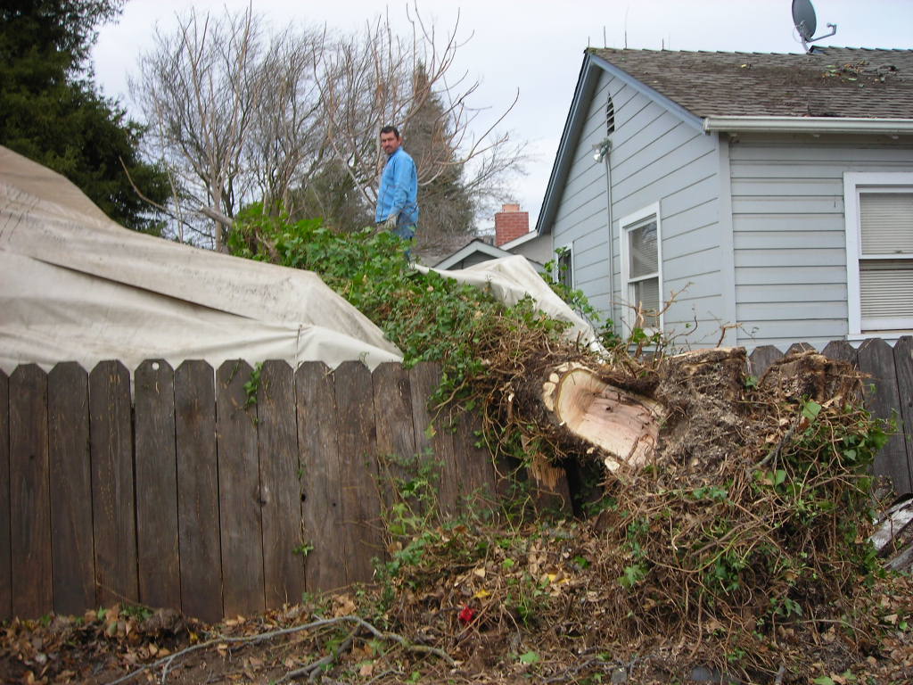 Forgot to mention the lot next door is getting leveled for a 4500 sq ft house. They cut at the base and had it "secured" to a "special tree" ROPE (IMG:style_emoticons/default/screwy.gif) tied to a small tractor. They should have cut many of the branches but I guess they didn't want to climb. They almost had it fall into the empty lot as planned when the rope BROKE. (IMG:style_emoticons/default/ohmy.gif) I asked them why not CHAIN... (IMG:style_emoticons/default/dry.gif)