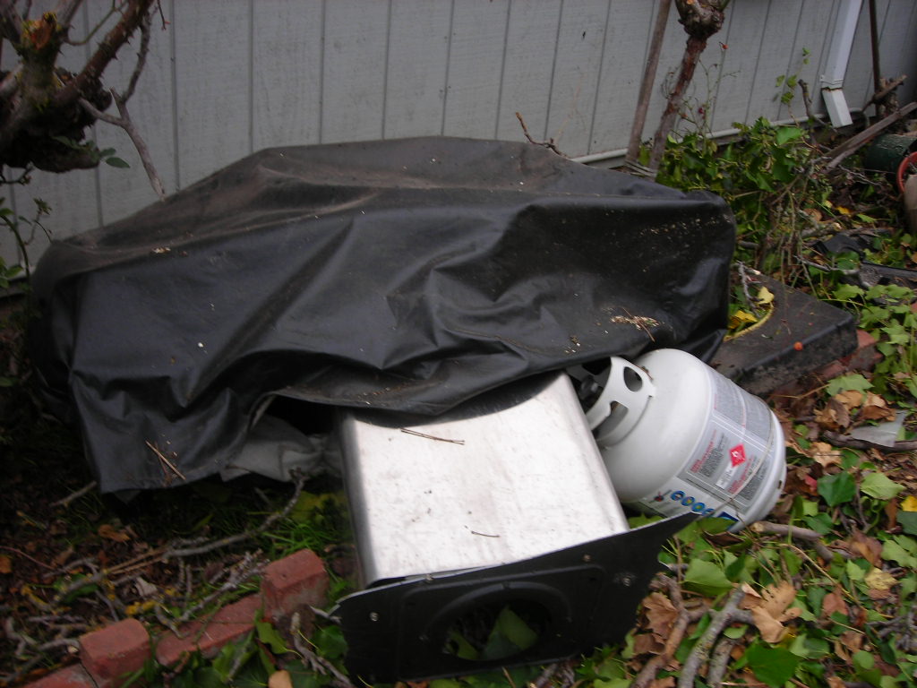 Not a great day, I'm "home" because my wife and daughter are sick, in the morning I delivered the neo to the show, after we set up three cars and I get home they tell us now we need to move them to make room for another booth, I log in and the tree falls literally in front of the office window. I could not open the back door or the gate to the back yard. On top of that my Ducane BBQ grill was directly in the path of destruction! (IMG:style_emoticons/default/ohmy.gif)