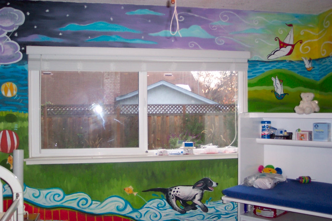 A good friend / artist did our kid's room. The cool part was that she incorporated a bunch of things that are a part of our lives / history... including the 914. Does the bridge look familiar?