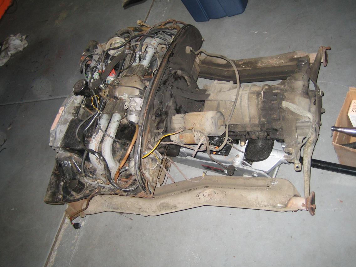 I decided to remove the engine today, I was hoping for help but in the end decided to just do it myself. Could have done with another jack though, the universal joint on the gear shifter linkage could not be disassembled as the grub screw had been rounded by a PO. With the engine bar removed there was just enough room to pull out the whole assembly. Chris |
