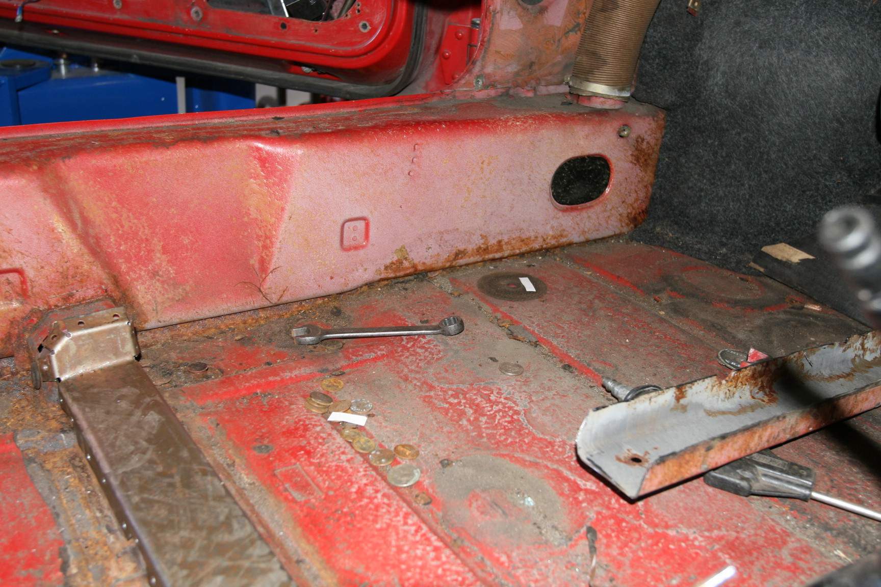 Get up close to things, and you can see where the rust is at work under the factory tar. A look down the front floorpan area indicates that only a little surface rust is having its fun along the lower longitudinal seam. We'll have to clear that up, too.