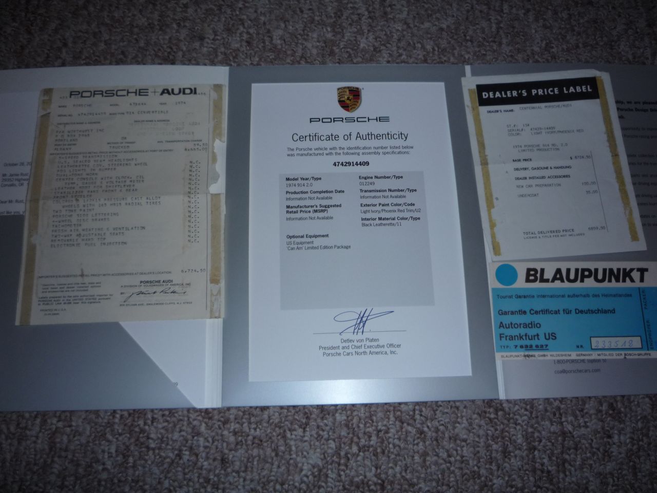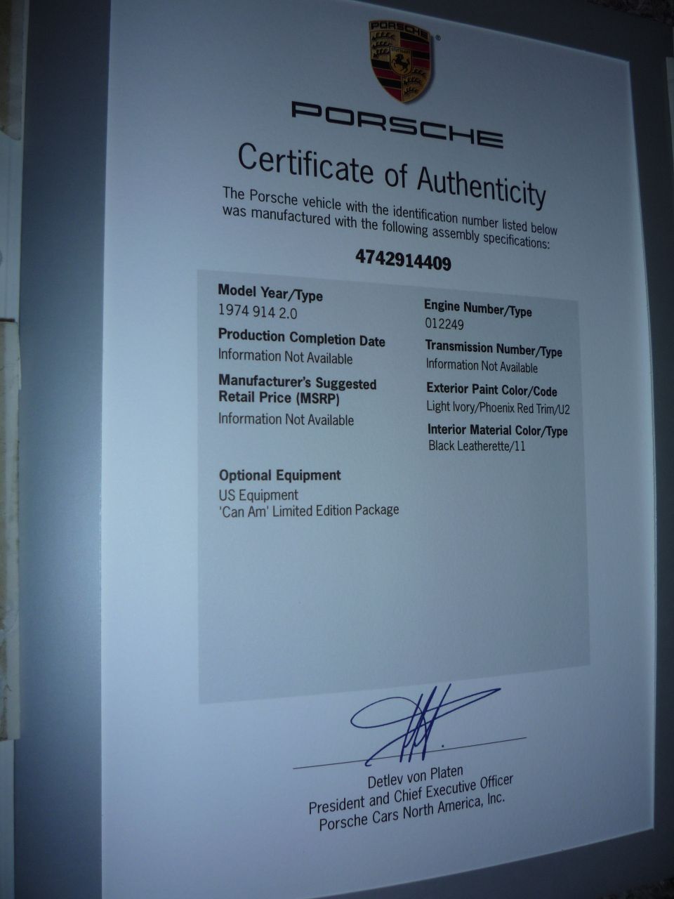 Here is a pic of my COA from Porsche! Very cool (IMG:style_emoticons/default/biggrin.gif)