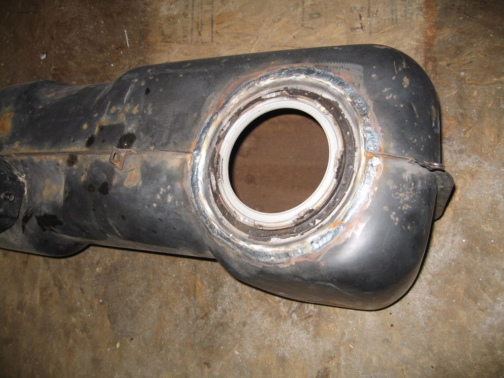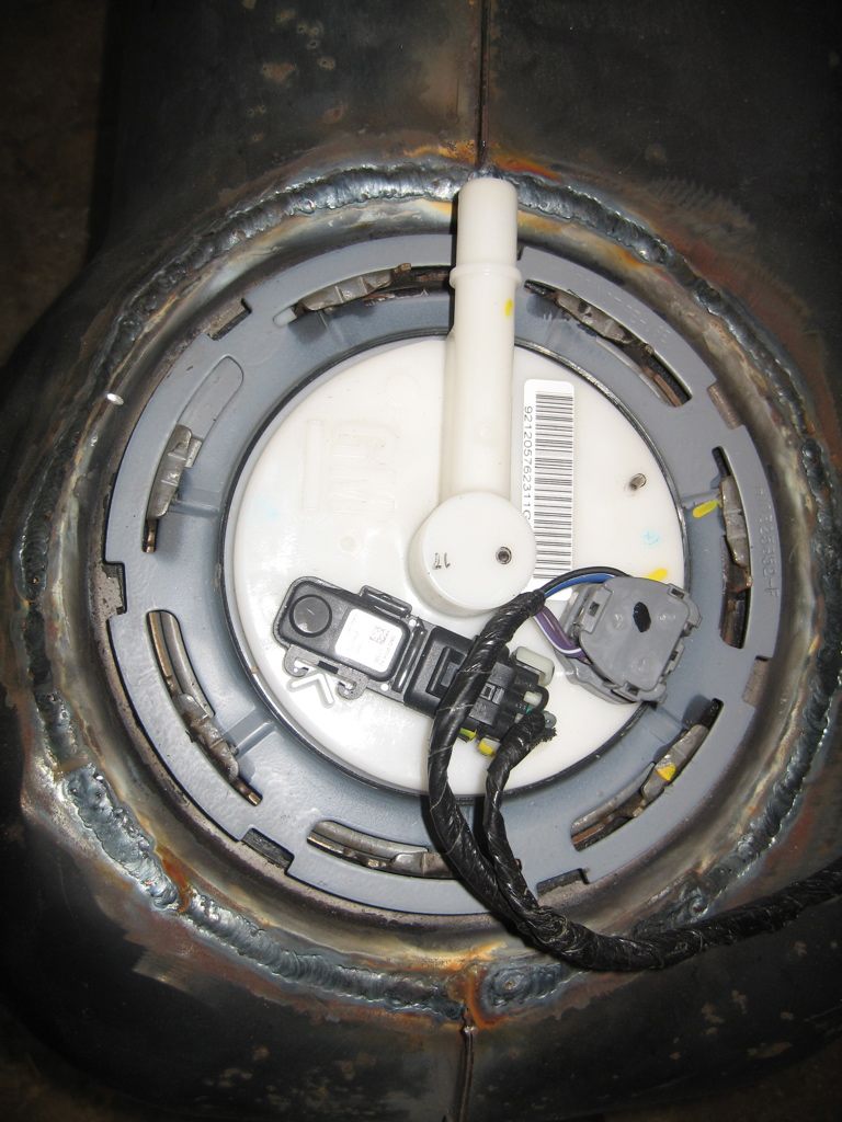 Cut the top fuel pump flange out of a Pontiac GTO tank and welded it into a 914 tank. This is done as I am using a GTO engine with it's fuel injection. It will be for this pump which incorporates a reservoir bucket, the pump, pressure regulator, filter, and a sender. To make it fit I had to cut out the reservoir bucket out of the 914 tank which is removed by drilling three spot welds out of the tank bottom. Here is the pump in the tank. A little bit closer to done today! |