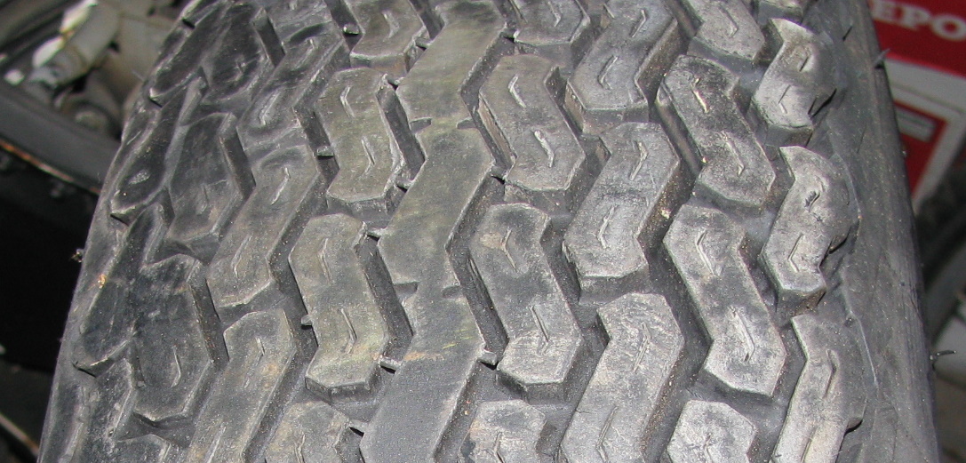 ...A REPLACEMENT TIRE, BUT I THINK IT WAS THE FIRST OEM TOO ....IT'S MOUNTED ON THE SILVER PAINTED PRESSED STEEL 5.5J X 15 WHEEL WITH THE "NEW MAG LOOK" CROSS DESIGN TO THE STAMPING 1983 KLEBER (MICHELIN SUSIDIARY) 165HR15 STEEL RADIALS - LAST / CURRENT TIRES ON RIVIERA MAGS AT 4 WHEELS - STILL GOOD TREAD BUT WELL PAST THEIR "SAFE LIFE" !!!! ![]() |