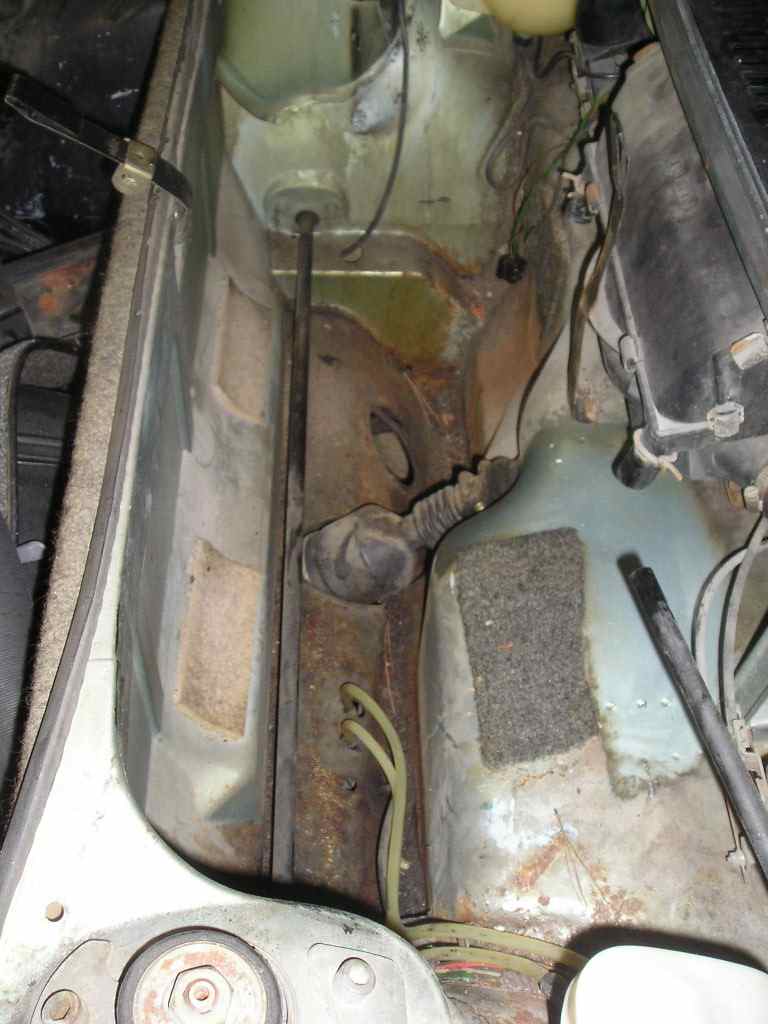 Here is the car when I first picked it up. The car came fully optioned and even came with SS heat exchangers and a running two liter engine. The car was wrecked at some point and had a crappy repair done to it but I am still trying to figure out what happened. Both the driver's front corner and the driver's rear corner had damage but the door and rear quarter seem fine. I will find out more once I start stripping some paint and bondo. (IMG:style_emoticons/default/dry.gif) ![]() The interior was about a 4 on a 10 scale however the dash is crack free! (IMG:style_emoticons/default/piratenanner.gif) ![]() The rear floor pan is shot and I knew that before I bought the car. The previous owner patched the floor at some point and installed three new seat brackets over the bad metal. (IMG:style_emoticons/default/dry.gif) I ordered a new floor pan and a fourth seat bracket from AA today. |
