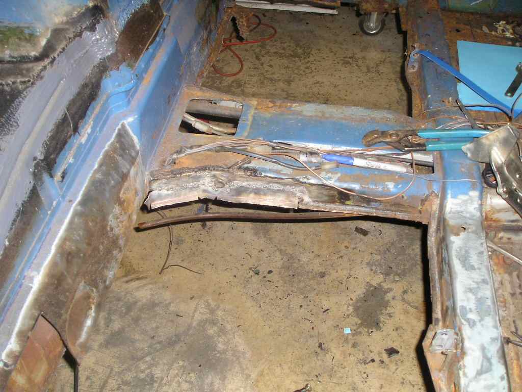 I did a little more tonight. I got tired of cutting more and more out of the car so I repaired a piece on the tunnel. I also cut some more rust out in the passenger corner And I also cut the seat mounts from the old floor pan and got them ready to use. |