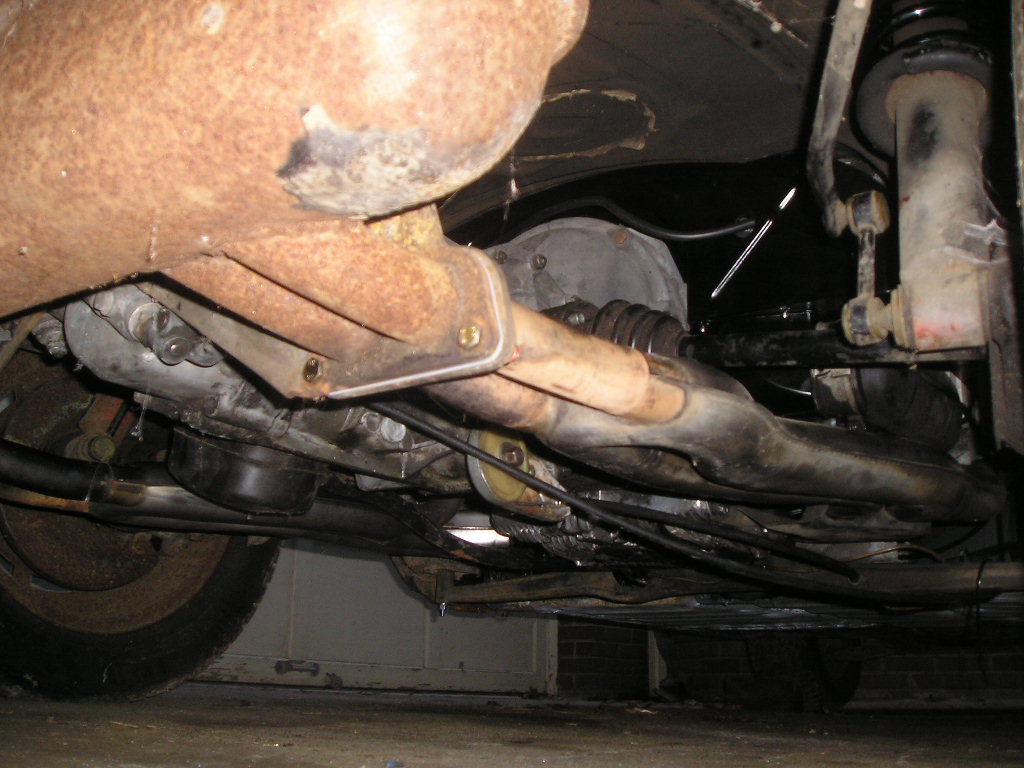Here are a few more shots of the engine. You can see my SS heat exchangers that I had for the car. The car came to me with an old rusty bursch muffler so I replaced that with an original old rusty 2.0L muffler (which will get painted sometime). I also used an exhaust hardware kit that I got from AA to install everything. And before installing the engine I regreased the CV joints.