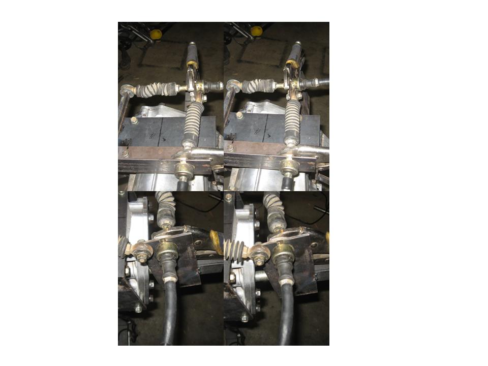 ![]() Next up are a couple of pics of the business end of the shifting mechanism. Obviously this is a mickey-mouse mock-up -- but I wanted to see how tall the shifter upright needed to be, and where to locate the left-right stand-off. I clamped the upright to the shift-rod connector using Vise-Grips until I got the height of the upright correct, then tack-welded it. It shifts great, despite the extreme angle of the fore-aft cable. Custom cables will take out the these kinks... ![]() ![]() It should be noted that the movement of the shift rod fore-aft and side-side is very acute. Below is a series of four pictures that depicts the side-side (note the rubber boot is scrunched when you compare the top two pics when moving the shifter from the 1-2 gate to the 5-R gate) and fore-aft (note the differing distances of the upright in comparison to the rear of the trans when the shifter is moved from 1st to 2nd). I'll make the whole mechanism much more pretty, and weld the stand-off to the trans-to-body mount. I'll probably have to make up a new module for the shifter, too so that I can accommodate the length of the cables, which will use rod ends at each end. Stay tuned! |