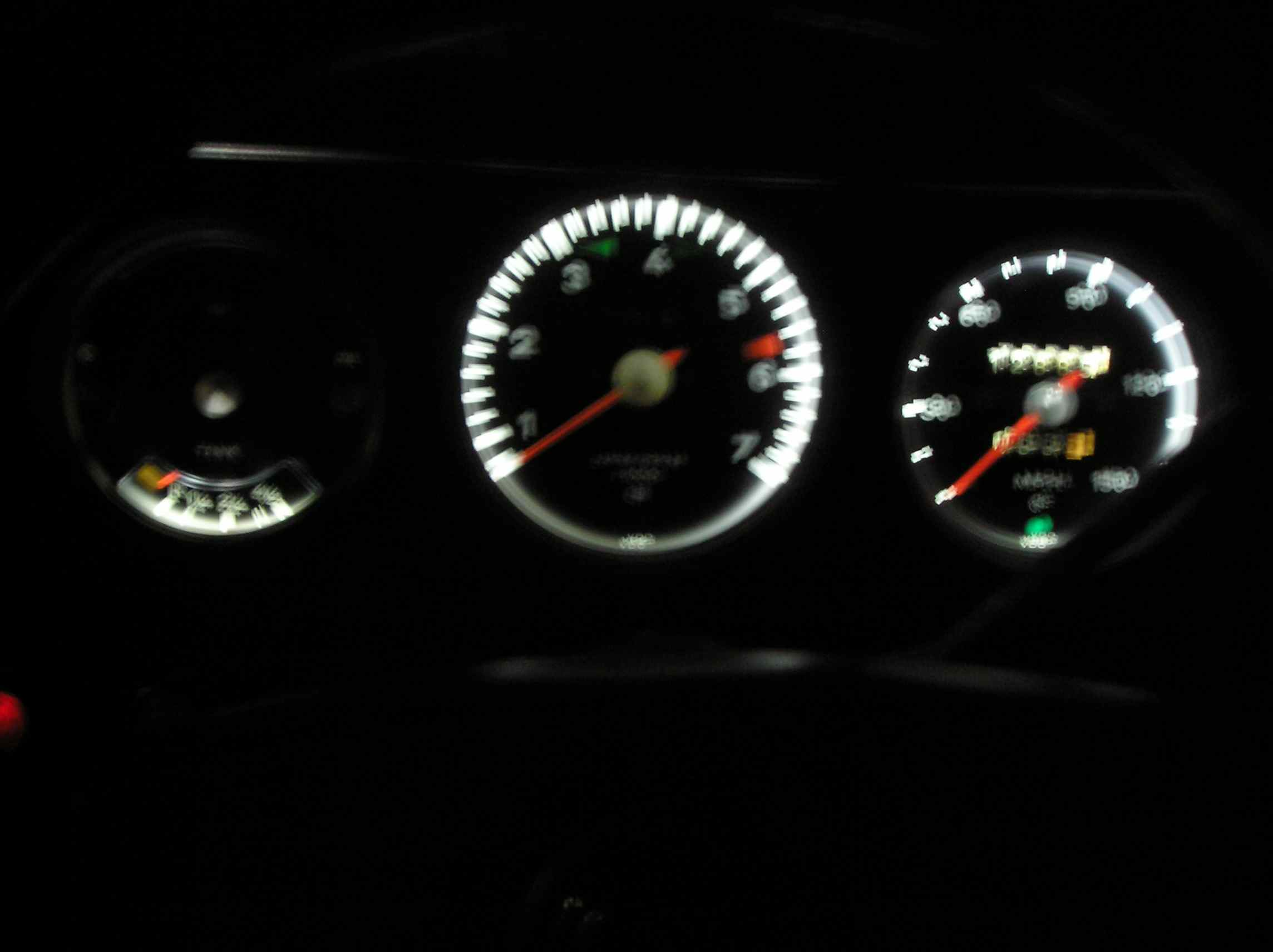 So I did something SAWEET to my car last night. I installed White LED Strips in the gauges to get rid of the yellow halogen bulbs. It came out looking great.