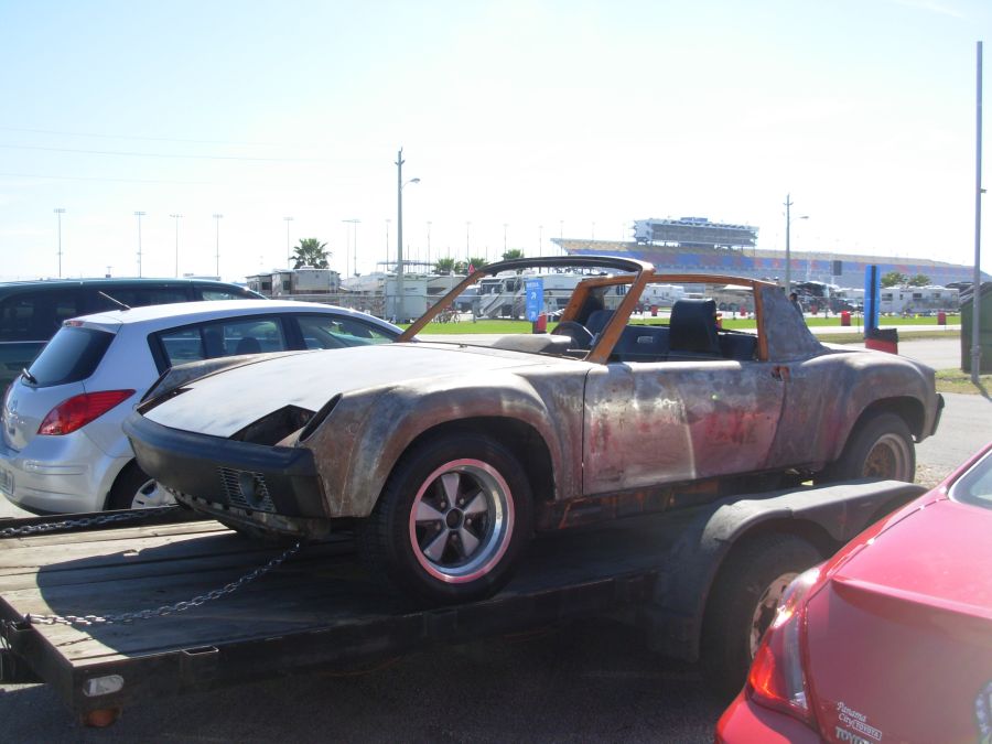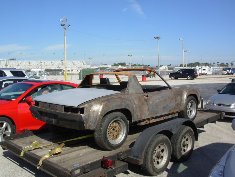 A Big Surprize, as I was looking for a parking spot, I see a Factory 914-6 that I sold a few months ago sitting in the parking lot. I parked right in front of it. It is being taken to California by one of the race teams that was here in Daytona. The same team that's running the Boxster? That trailer looks very familiar; my own 914 may have been on it at one point... (IMG:style_emoticons/default/wink.gif) --DD |