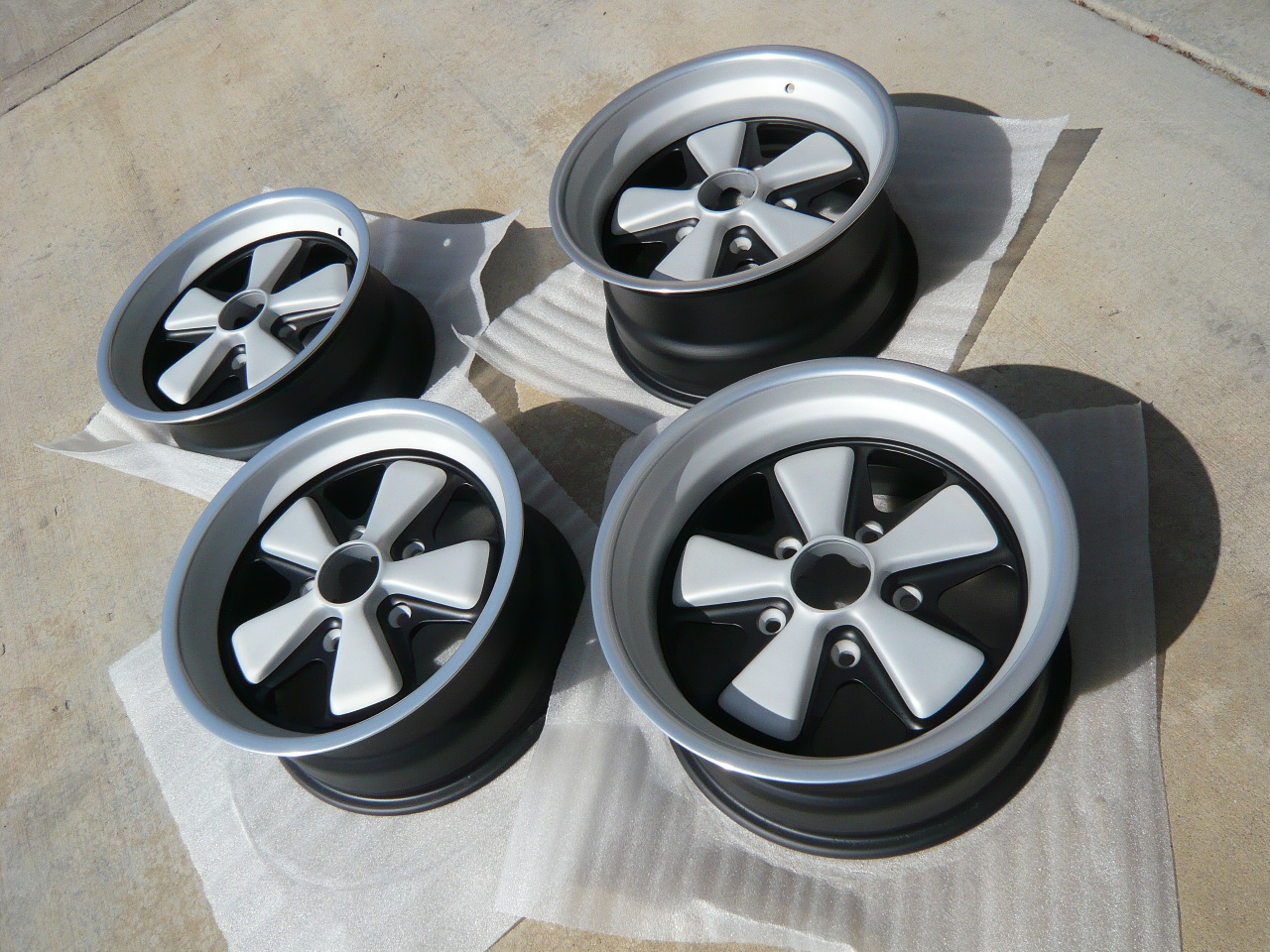 yup chrome ina can method works ,I have done it many times , But there is nothing like the real thing. 1realdeal 2cann 3harvey Something interesting in your real deal photo. Notice the splotching on the spokes? This is typical on factory wheels, after all it was only done to provide a little protection on bare aluminum. This is in the forging resulting from the process. Now, however, we find no one wants such a "imperfection" in their wheels. We sometimes have to refinish the spoke two or three times to get past the material compression. Al We maintain a series of original factory wheels for comparison and as a guide to originality. It's fun to go out to Weidman Wheels and have Harvey and the gang show you why they can't refinish to "factory perfect" 'cause the factory was nowhere near perfect... (IMG:style_emoticons/default/biggrin.gif) |