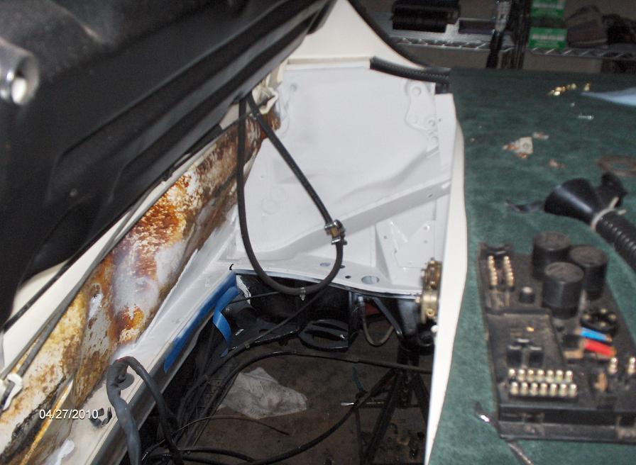 I didn't weld up the two holes for the AC lines, just found some metal "plugs" at a local hardware store and they snapped into place. Why bother with anything else right now. It'll keep the road grime out of the engine bay. Attached thumbnail(s) |