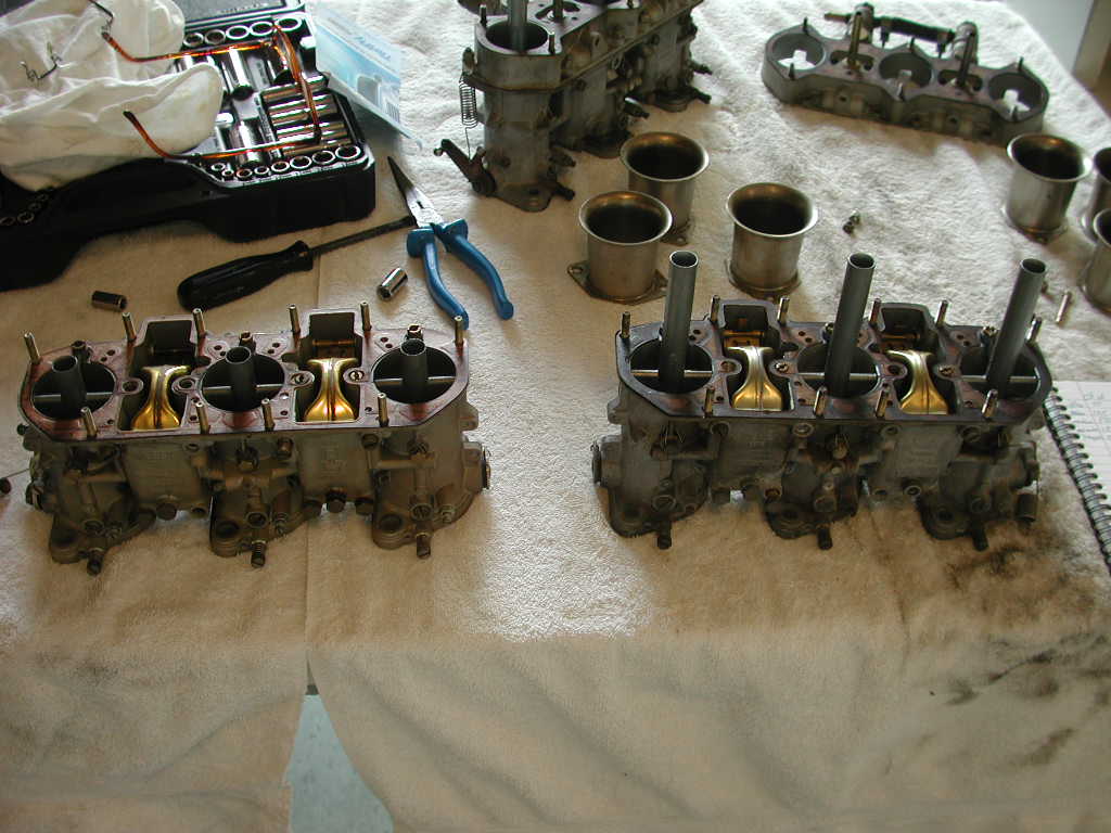 I have one last pic. There are old webers and new webers. The carb on the left is an old one, and the newer on is on the right. The tell-tale is the quality of surfacing that is done on the outside casting. Inside these carbs look pretty much the same. They got chinzy over time and the outer casting was left rougher.