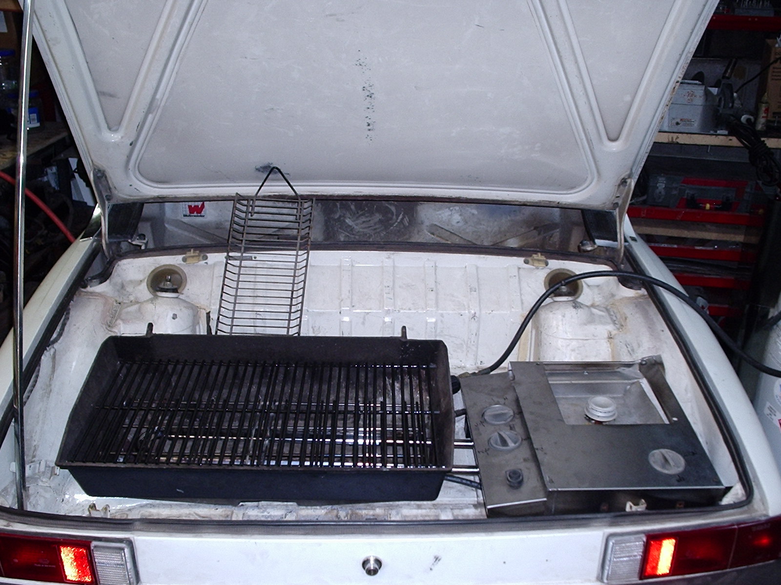 Turn this rear half of a 914 into a car-b-q (IMG:style_emoticons/default/happy11.gif) In time to use at RedRock's Bar-B-Q What kept me from getting it done, funds (IMG:style_emoticons/default/sad.gif) Brutal year, but that won't stop this Stubbord Irishman so any of the gang in Colorado has materials I can use for the car-b-q please LMK also a hand would be very greatly appreciated! (IMG:style_emoticons/default/aktion035.gif) biggest issue is the propane gas plumbing I've a great start from a fellow 914'ner In HIS 914! (IMG:style_emoticons/default/aktion035.gif) Too kool. He brought a 2" tube bar,3 'long for the tongue Anybody have a 2" ball reciever? Input please, I'm smart enough to learn from other people mistakes! (IMG:style_emoticons/default/smash.gif) |