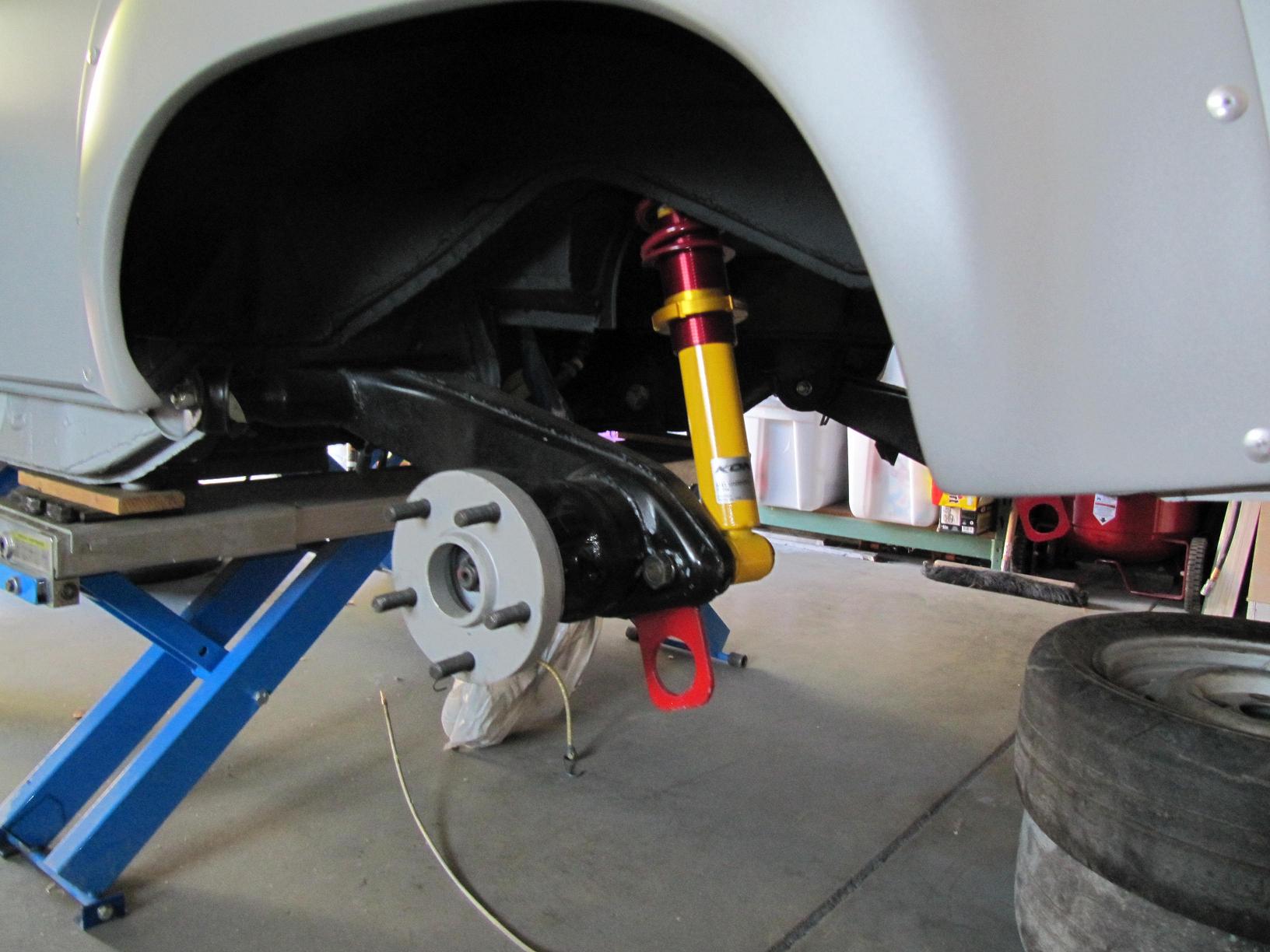 Rear suspension detail: Elephant polybronze, Koni adjustable, Ground Control adjustable sleeves. 250# springs